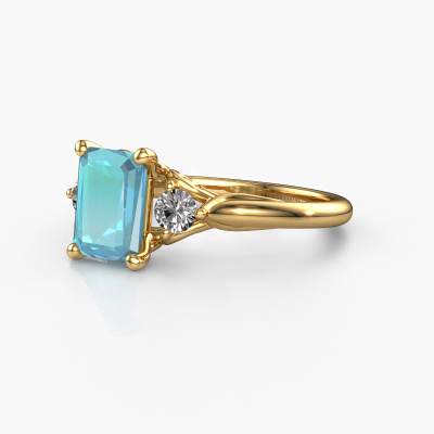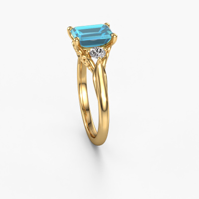 Deze verlovingsring heeft de naam Laurian EME. Deze bijzondere verlovingsring uitgevoerd, in 14 Carat goud is gezet met 8x6 mm blauw topaas. Deze exclusieve gouden 3 steens verlovingsring is een puur staaltje vakmanschap! Alle kleine details zijn door onze goudsmid met veel geduld en passie vervaardigd. Dit ambacht vraagt een deskundig oog en vaardige hand om deze verlovingsring met uiterste precisie samen te stellen. En dat is precies waar onze goudsmeden enthousiast van worden! De prachtige blauw topaas zijn op een bijzondere manier gezet, zodat deze nog beter tot zijn recht komen. Dit geeft de verlovingsring extra allure. De verlovingsring is al uniek door zijn natuurlijke edelsteen, die we speciaal geselecteerd hebben voor deze ring. Daarnaast kun je zelf de samenstelling kiezen van het edelmetaal, waardoor je uiteindelijk een unieke verlovingsring hebt gecreëerd voor de meest exclusieve vrouw in je leven! Dit juweel is uniek, doordat je deze ring geheel naar eigen wensen kunt samenstellen.Door het gebruik van de modernste technieken, gecombineerd met ambachtelijk vakmanschap kunnen wij alle verlovingsringen zelf in ons atelier maken. Ieder sieraad wordt pas gemaakt nadat deze besteld is. Dit heeft als bijkomend voordeel dat we kunnen leveren tegen een prijs die je nergens anders tegenkomt.Ons team is iedere dag weer bezig om nieuwe ontwerpen toe te voegen, in samenwerking met onze designers en goudsmeden wordt gekeken hoe we tot het mooiste ontwerp kunnen komen. Wij doen ons best om tot een zo gevarieerd mogelijk aanbod te komen. Wellicht heb je zelf al een mooi idee van een sieraad dat je ooit wel eens gezien hebt. Neem dan eens vrijblijvend contact met ons op. Wij maken een offerte voor je op waarbij wij vrij zeker zijn dat we wat betreft kwaliteit en prijs jou versteld zullen laten staan.Om het voor jou makkelijker te maken kun je ieder besteld sieraad binnen 30 dagen na aflevering eenvoudig weer retour sturen.