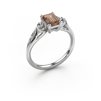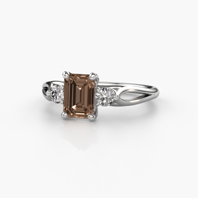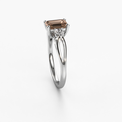 Deze verlovingsring heeft de naam Amie EME. Deze smaakvolle verlovingsring uitgevoerd, in platina is gezet met 1.350 crt bruine diamant. Deze exclusieve platina 3 steens verlovingsring is een puur staaltje vakmanschap! Alle kleine details zijn door onze goudsmid met veel geduld en passie vervaardigd. Dit ambacht vraagt een deskundig oog en vaardige hand om deze verlovingsring met uiterste precisie samen te stellen. En dat is precies waar onze goudsmeden enthousiast van worden! De prachtige bruine diamanten zijn op een bijzondere manier gezet, zodat deze nog beter tot zijn recht komen. Dit geeft de verlovingsring extra allure. De verlovingsring is al uniek door zijn natuurlijke edelsteen, die we speciaal geselecteerd hebben voor deze ring. Daarnaast kun je zelf de samenstelling kiezen van het edelmetaal, waardoor je uiteindelijk een unieke verlovingsring hebt gecreëerd voor de meest exclusieve vrouw in je leven! Dit juweel is gemaakt om aan jouw vinger te stralen, ieder sieraad wordt met liefde door onze goudsmeden met de hand gemaakt.Wellicht is het je opgevallen dat onze prijzen gemiddeld 30% lager liggen dan bij een andere juwelier. En dat terwijl de kwaliteit in de meeste gevallen nog beter is! Dit komt doordat onze goudsmeden je verlovingsring direct in ons eigen atelier vervaardigen. Hierdoor hoeven we geen dure voorraden te hanteren en kunnen we ieder gewenst detail direct op jouw verlovingsring aanbrengen.Ons team is iedere dag weer bezig om nieuwe ontwerpen toe te voegen, in samenwerking met onze designers en goudsmeden wordt gekeken hoe we tot het mooiste ontwerp kunnen komen. Wij doen ons best om tot een zo gevarieerd mogelijk aanbod te komen. Wellicht heb je zelf al een mooi idee van een sieraad dat je ooit wel eens gezien hebt. Neem dan eens vrijblijvend contact met ons op. Wij maken een offerte voor je op waarbij wij vrij zeker zijn dat we wat betreft kwaliteit en prijs jou versteld zullen laten staan.Om het voor jou makkelijker te maken kun je ieder besteld sieraad binnen 30 dagen na aflevering eenvoudig weer retour sturen.