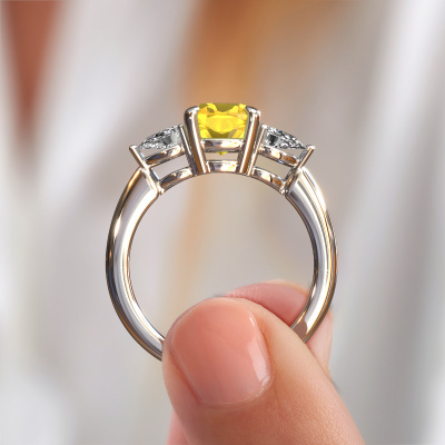 Deze verlovingsring heeft de naam Chanou CUS. Deze mooie verlovingsring uitgevoerd, in platina is gezet met 7 mm gele saffier. Deze exclusieve platina 3 steens verlovingsring is een puur staaltje vakmanschap! Alle kleine details zijn door onze goudsmid met veel geduld en passie vervaardigd. Dit ambacht vraagt een deskundig oog en vaardige hand om deze verlovingsring met uiterste precisie samen te stellen. En dat is precies waar onze goudsmeden enthousiast van worden! De prachtige gele saffier zijn op een bijzondere manier gezet, zodat deze nog beter tot zijn recht komen. Dit geeft de verlovingsring extra allure. De verlovingsring is al uniek door zijn natuurlijke edelsteen, die we speciaal geselecteerd hebben voor deze ring. Daarnaast kun je zelf de samenstelling kiezen van het edelmetaal, waardoor je uiteindelijk een unieke verlovingsring hebt gecreëerd voor de meest exclusieve vrouw in je leven! Dit juweel is gemaakt om aan jouw vinger te stralen, ieder sieraad wordt met liefde door onze goudsmeden met de hand gemaakt.Onze goudsmeden vervaardigen pas je Chanou CUS verlovingsring, zodra je deze besteld hebt. We hebben geen voorraden. Het voordeel hiervan is dat we de voorraad niet door hoeven te berekenen in de prijs, en kunnen daardoor sieraden leveren tegen een bijzonder lage prijs.Iedere dag is ons team van goudsmeden en sieradenontwerpers aan het werk om nieuwe sieraden te creëren. Het kan zijn dat je ergens een exclusieve verlovingsring gezien hebt, die je als basis wilt nemen bij het ontwerpen van jouw unieke ring. Neem gerust contact met ons op en we zullen je een aanbod doen, waar je vrijwel zeker verwonderd zult zijn over de kwaliteit en de prijs.Om het voor jou makkelijker te maken kun je ieder besteld sieraad binnen 30 dagen na aflevering eenvoudig weer retour sturen.