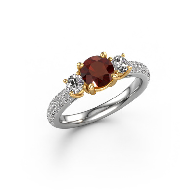 Deze verlovingsring heeft de naam Marielle RND. Deze smaakvolle verlovingsring uitgevoerd, in 14 Carat witgoud is gezet met 6 mm granaat. Deze exclusieve witgouden 3 steens verlovingsring is een puur staaltje vakmanschap! Alle kleine details zijn door onze goudsmid met veel geduld en passie vervaardigd. Dit ambacht vraagt een deskundig oog en vaardige hand om deze verlovingsring met uiterste precisie samen te stellen. En dat is precies waar onze goudsmeden enthousiast van worden! De prachtige granaat zijn op een bijzondere manier gezet, zodat deze nog beter tot zijn recht komen. Dit geeft de verlovingsring extra allure. De verlovingsring is al uniek door zijn natuurlijke edelsteen, die we speciaal geselecteerd hebben voor deze ring. Daarnaast kun je zelf de samenstelling kiezen van het edelmetaal, waardoor je uiteindelijk een unieke verlovingsring hebt gecreëerd voor de meest exclusieve vrouw in je leven! Dit juweel wordt met passie en liefde gemaakt door één van onze meestergoudsmeden.Door het gebruik van de modernste technieken, gecombineerd met ambachtelijk vakmanschap kunnen wij alle verlovingsringen zelf in ons atelier maken. Ieder sieraad wordt pas gemaakt nadat deze besteld is. Dit heeft als bijkomend voordeel dat we kunnen leveren tegen een prijs die je nergens anders tegenkomt.Iedere dag is ons team van goudsmeden en sieradenontwerpers aan het werk om nieuwe sieraden te creëren. Het kan zijn dat je ergens een exclusieve verlovingsring gezien hebt, die je als basis wilt nemen bij het ontwerpen van jouw unieke ring. Neem gerust contact met ons op en we zullen je een aanbod doen, waar je vrijwel zeker verwonderd zult zijn over de kwaliteit en de prijs.Om het voor jou makkelijker te maken kun je ieder besteld sieraad binnen 30 dagen na aflevering eenvoudig weer retour sturen.