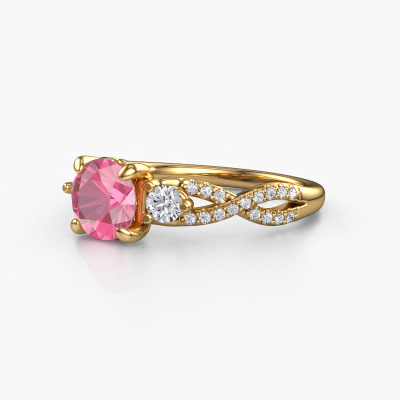 Deze verlovingsring heeft de naam Marilou RND. Deze gespleten banden verlovingsring uitgevoerd, in 14 Carat goud is gezet met 6.5 mm roze saffier. Deze exclusieve gouden 3 steens verlovingsring is een puur staaltje vakmanschap! Alle kleine details zijn door onze goudsmid met veel geduld en passie vervaardigd. Dit ambacht vraagt een deskundig oog en vaardige hand om deze verlovingsring met uiterste precisie samen te stellen. En dat is precies waar onze goudsmeden enthousiast van worden! De prachtige roze saffier zijn op een bijzondere manier gezet, zodat deze nog beter tot zijn recht komen. Dit geeft de verlovingsring extra allure. De verlovingsring is al uniek door zijn natuurlijke edelsteen, die we speciaal geselecteerd hebben voor deze ring. Daarnaast kun je zelf de samenstelling kiezen van het edelmetaal, waardoor je uiteindelijk een unieke verlovingsring hebt gecreëerd voor de meest exclusieve vrouw in je leven! Dit juweel is speciaal voor jou gemaakt, met aandacht voor detail en design.Wellicht is het je opgevallen dat onze prijzen gemiddeld 30% lager liggen dan bij een andere juwelier. En dat terwijl de kwaliteit in de meeste gevallen nog beter is! Dit komt doordat onze goudsmeden je verlovingsring direct in ons eigen atelier vervaardigen. Hierdoor hoeven we geen dure voorraden te hanteren en kunnen we ieder gewenst detail direct op jouw verlovingsring aanbrengen.Heb je zelf een specifieke verlovingsring ergens gezien, die je graag aan jouw geliefde zou willen geven? Bespreek gerust jouw ideeën met onze sieradenontwerpers, want wij zetten graag jouw ontwerp om tot een fantasie verlovingsring. Je kunt tijdens het ontwerpproces steeds meekijken, omdat wij met 3D tekeningen werken. Je krijgt hierdoor al een realistische indruk van hoe jouw ontwerp er in werkelijkheid uit komt te zien. Daarbij kun je een dummy vooraf bestellen. Een dummy is een kunststof ring, die precies dezelfde vormen heeft als jouw uiteindelijke ontwerp. Je kunt deze passen en zien of de breedte en dikte bijvoorbeeld naar wens zijn. Wij sturen je graag een vrijblijvende offerte, waarbij je ongetwijfeld versteld zult staan over de prijs en de kwaliteit van de ring en edelstenen.Om het voor jou makkelijker te maken kun je ieder besteld sieraad binnen 30 dagen na aflevering eenvoudig weer retour sturen.