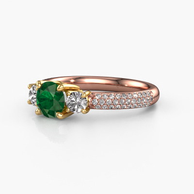 Deze verlovingsring heeft de naam Marielle RND. Deze smaakvolle verlovingsring uitgevoerd, in 14 Carat rosé goud is gezet met 6 mm smaragd. Deze exclusieve rosé gouden 3 steens verlovingsring is een puur staaltje vakmanschap! Alle kleine details zijn door onze goudsmid met veel geduld en passie vervaardigd. Dit ambacht vraagt een deskundig oog en vaardige hand om deze verlovingsring met uiterste precisie samen te stellen. En dat is precies waar onze goudsmeden enthousiast van worden! De prachtige smaragd zijn op een bijzondere manier gezet, zodat deze nog beter tot zijn recht komen. Dit geeft de verlovingsring extra allure. De verlovingsring is al uniek door zijn natuurlijke edelsteen, die we speciaal geselecteerd hebben voor deze ring. Daarnaast kun je zelf de samenstelling kiezen van het edelmetaal, waardoor je uiteindelijk een unieke verlovingsring hebt gecreëerd voor de meest exclusieve vrouw in je leven! Dit juweel wordt met passie en liefde gemaakt door één van onze meestergoudsmeden.Door het gebruik van de modernste technieken, gecombineerd met ambachtelijk vakmanschap kunnen wij alle verlovingsringen zelf in ons atelier maken. Ieder sieraad wordt pas gemaakt nadat deze besteld is. Dit heeft als bijkomend voordeel dat we kunnen leveren tegen een prijs die je nergens anders tegenkomt.Iedere dag is ons team van goudsmeden en sieradenontwerpers aan het werk om nieuwe sieraden te creëren. Het kan zijn dat je ergens een exclusieve verlovingsring gezien hebt, die je als basis wilt nemen bij het ontwerpen van jouw unieke ring. Neem gerust contact met ons op en we zullen je een aanbod doen, waar je vrijwel zeker verwonderd zult zijn over de kwaliteit en de prijs.Om het voor jou makkelijker te maken kun je ieder besteld sieraad binnen 30 dagen na aflevering eenvoudig weer retour sturen.