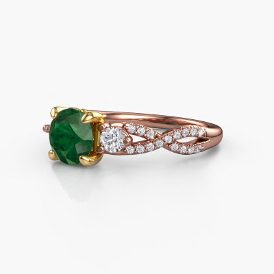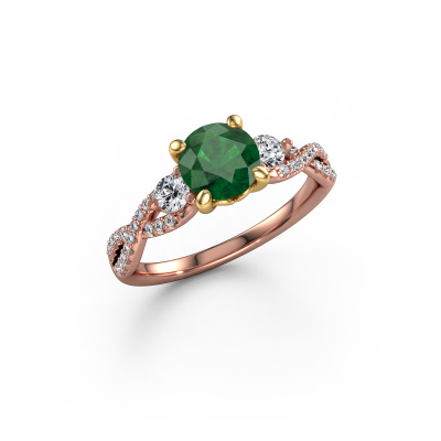 Deze verlovingsring heeft de naam Marilou RND. Deze gespleten banden verlovingsring uitgevoerd, in 14 Carat rosé goud is gezet met 6.5 mm smaragd. Deze exclusieve rosé gouden 3 steens verlovingsring is een puur staaltje vakmanschap! Alle kleine details zijn door onze goudsmid met veel geduld en passie vervaardigd. Dit ambacht vraagt een deskundig oog en vaardige hand om deze verlovingsring met uiterste precisie samen te stellen. En dat is precies waar onze goudsmeden enthousiast van worden! De prachtige smaragd zijn op een bijzondere manier gezet, zodat deze nog beter tot zijn recht komen. Dit geeft de verlovingsring extra allure. De verlovingsring is al uniek door zijn natuurlijke edelsteen, die we speciaal geselecteerd hebben voor deze ring. Daarnaast kun je zelf de samenstelling kiezen van het edelmetaal, waardoor je uiteindelijk een unieke verlovingsring hebt gecreëerd voor de meest exclusieve vrouw in je leven! Dit juweel is speciaal voor jou gemaakt, met aandacht voor detail en design.Wellicht is het je opgevallen dat onze prijzen gemiddeld 30% lager liggen dan bij een andere juwelier. En dat terwijl de kwaliteit in de meeste gevallen nog beter is! Dit komt doordat onze goudsmeden je verlovingsring direct in ons eigen atelier vervaardigen. Hierdoor hoeven we geen dure voorraden te hanteren en kunnen we ieder gewenst detail direct op jouw verlovingsring aanbrengen.Heb je zelf een specifieke verlovingsring ergens gezien, die je graag aan jouw geliefde zou willen geven? Bespreek gerust jouw ideeën met onze sieradenontwerpers, want wij zetten graag jouw ontwerp om tot een fantasie verlovingsring. Je kunt tijdens het ontwerpproces steeds meekijken, omdat wij met 3D tekeningen werken. Je krijgt hierdoor al een realistische indruk van hoe jouw ontwerp er in werkelijkheid uit komt te zien. Daarbij kun je een dummy vooraf bestellen. Een dummy is een kunststof ring, die precies dezelfde vormen heeft als jouw uiteindelijke ontwerp. Je kunt deze passen en zien of de breedte en dikte bijvoorbeeld naar wens zijn. Wij sturen je graag een vrijblijvende offerte, waarbij je ongetwijfeld versteld zult staan over de prijs en de kwaliteit van de ring en edelstenen.Om het voor jou makkelijker te maken kun je ieder besteld sieraad binnen 30 dagen na aflevering eenvoudig weer retour sturen.