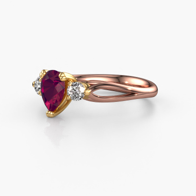 Deze bijzondere verlovingsring heeft de naam Amie per. Deze ring, uitgevoerd in 14 Carat rosé goud is gezet met 7x5 mm rhodoliet. Er is één persoon in je leven die er voor jou uit springt, waar je hart sneller van klopt, die echt uniek voor jou is. En juist deze persoon verdient iets speciaals, iets unieks dat speciaal voor haar vervaardigd is. Wij vermoeden dat deze verlovingsring heel mooi in dit plaatje past. Ieder detail van deze exclusieve rosé gouden 3 steens verlovingsring wordt met de hand samengesteld, bijgewerkt en gepolijst door onze goudsmid in het atelier beneden. Ons doel is dat de vormgeving en samenstelling van de verlovingsring de prachtige rhodoliet versterkt en laat stralen. Een heel secuur werkje, dat uiteindelijk een prachtig resultaat heeft. En dat is precies waar wij voor willen gaan, daar worden wij enthousiast van. Het leuke van onze configurator is dat je zelf je juweel kunt samenstellen tot een eigen persoonlijk juweel. Deze 3 steens verlovingsring is uitgevoerd in de edelmetaal combinatie rosé goud met goud, maar u kunt dus ook uit andere kleuren kiezen. Ieder juweel is gemaakt door een team van gedreven goudsmeden en designers. Hierdoor zal dit unieke pronkstuk een echte eyecatcher zijn.Door het gebruik van de modernste technieken, gecombineerd met ambachtelijk vakmanschap kunnen wij alle verlovingsringen zelf in ons atelier maken. Ieder sieraad wordt pas gemaakt nadat deze besteld is. Dit heeft als bijkomend voordeel dat we kunnen leveren tegen een prijs die je nergens anders tegenkomt.Heb je zelf een speciale ring in gedachten, die je wellicht ergens gezien hebt? Je kunt je ideeën altijd met ons bespreken, wij zetten graag jouw ontwerp om tot een unieke verlovingsring. Het ontwerp kun je volgen, omdat wij met 3D tekeningen werken. Hierdoor krijg je al een realistische indruk van hoe jouw ontwerp er in het echt uit komt te zien. Wij sturen je graag een vrijblijvende offerte, waarbij je ongetwijfeld verwonderd zult zijn over de prijs in combinatie met de uitstekende kwaliteit die we aanbieden.Om het voor jou makkelijker te maken kun je ieder besteld sieraad binnen 30 dagen na aflevering eenvoudig weer retour sturen.