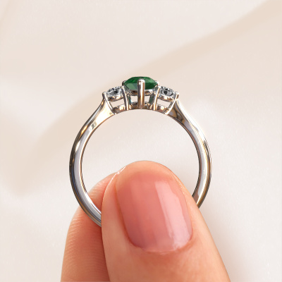 Deze bijzondere verlovingsring heeft de naam Lieselot PER. Deze ring, uitgevoerd in platina is gezet met 7x5 mm smaragd. Er is één persoon in je leven die er voor jou uit springt, waar je hart sneller van klopt, die echt uniek voor jou is. En juist deze persoon verdient iets speciaals, iets unieks dat speciaal voor haar vervaardigd is. Wij vermoeden dat deze verlovingsring heel mooi in dit plaatje past. Ieder detail van deze exclusieve platina 3 steens verlovingsring wordt met de hand samengesteld, bijgewerkt en gepolijst door onze goudsmid in het atelier beneden. Ons doel is dat de vormgeving en samenstelling van de verlovingsring de prachtige smaragd versterkt en laat stralen. Een heel secuur werkje, dat uiteindelijk een prachtig resultaat heeft. En dat is precies waar wij voor willen gaan, daar worden wij enthousiast van. Het leuke van onze configurator is dat je zelf je juweel kunt samenstellen tot een eigen persoonlijk juweel. Deze 3 steens verlovingsring is uitgevoerd in de edelmetaal combinatie platina met platina, maar u kunt dus ook uit andere kleuren kiezen. Ieder juweel wordt met passie en liefde gemaakt door één van onze meestergoudsmeden.Wellicht is het je opgevallen dat onze prijzen gemiddeld 30% lager liggen dan bij een andere juwelier. En dat terwijl de kwaliteit in de meeste gevallen nog beter is! Dit komt doordat onze goudsmeden je verlovingsring direct in ons eigen atelier vervaardigen. Hierdoor hoeven we geen dure voorraden te hanteren en kunnen we ieder gewenst detail direct op jouw verlovingsring aanbrengen.Ons team ontwerpt dagelijks nieuwe ringen in diverse stijlen. Heb je zelf een 3 steens verlovingsring ergens gezien, die jij het liefst aan jouw geliefde zou willen geven? Je kunt altijd jouw ideeën en ontwerp met onze sieradenontwerpers bespreken, want wij zetten graag jouw ontwerp om tot een modieuze verlovingsring. Je kunt tijdens het ontwerpproces steeds meekijken, omdat het ontwerp in een zeer gedetailleerde 3D tekening wordt omgezet. Daarbij kun je een dummy bestellen van het uiteindelijke ontwerp. Een dummy is een kunststof ring, die precies dezelfde vormen heeft als jouw uiteindelijke ontwerp. Je kunt deze passen en zien of de ontworpen verlovingsring helemaal naar jouw wens is. Wij sturen je graag een vrijblijvende offerte, waarbij je ongetwijfeld versteld zult staan over de prijs en de kwaliteit van de ring en edelstenen.Om het voor jou makkelijker te maken kun je ieder besteld sieraad binnen 30 dagen na aflevering eenvoudig weer retour sturen.