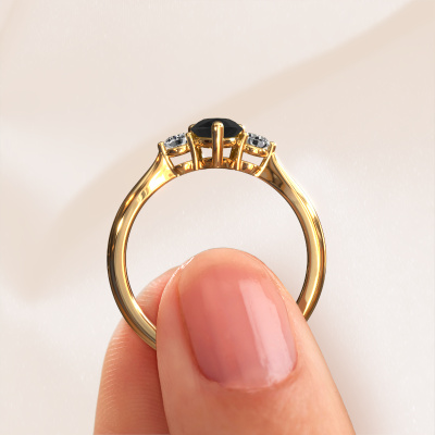 Deze bijzondere verlovingsring heeft de naam Lieselot PER. Deze ring, uitgevoerd in 14 Carat goud is gezet met 1.19 crt zwarte diamant. Er is één persoon in je leven die er voor jou uit springt, waar je hart sneller van klopt, die echt uniek voor jou is. En juist deze persoon verdient iets speciaals, iets unieks dat speciaal voor haar vervaardigd is. Wij vermoeden dat deze verlovingsring heel mooi in dit plaatje past. Ieder detail van deze exclusieve gouden 3 steens verlovingsring wordt met de hand samengesteld, bijgewerkt en gepolijst door onze goudsmid in het atelier beneden. Ons doel is dat de vormgeving en samenstelling van de verlovingsring de prachtige zwarte diamanten versterkt en laat stralen. Een heel secuur werkje, dat uiteindelijk een prachtig resultaat heeft. En dat is precies waar wij voor willen gaan, daar worden wij enthousiast van. Het leuke van onze configurator is dat je zelf je juweel kunt samenstellen tot een eigen persoonlijk juweel. Deze 3 steens verlovingsring is uitgevoerd in de edelmetaal combinatie goud met goud, maar u kunt dus ook uit andere kleuren kiezen. Ieder juweel wordt met passie en liefde gemaakt door één van onze meestergoudsmeden.Wellicht is het je opgevallen dat onze prijzen gemiddeld 30% lager liggen dan bij een andere juwelier. En dat terwijl de kwaliteit in de meeste gevallen nog beter is! Dit komt doordat onze goudsmeden je verlovingsring direct in ons eigen atelier vervaardigen. Hierdoor hoeven we geen dure voorraden te hanteren en kunnen we ieder gewenst detail direct op jouw verlovingsring aanbrengen.Ons team ontwerpt dagelijks nieuwe ringen in diverse stijlen. Heb je zelf een 3 steens verlovingsring ergens gezien, die jij het liefst aan jouw geliefde zou willen geven? Je kunt altijd jouw ideeën en ontwerp met onze sieradenontwerpers bespreken, want wij zetten graag jouw ontwerp om tot een modieuze verlovingsring. Je kunt tijdens het ontwerpproces steeds meekijken, omdat het ontwerp in een zeer gedetailleerde 3D tekening wordt omgezet. Daarbij kun je een dummy bestellen van het uiteindelijke ontwerp. Een dummy is een kunststof ring, die precies dezelfde vormen heeft als jouw uiteindelijke ontwerp. Je kunt deze passen en zien of de ontworpen verlovingsring helemaal naar jouw wens is. Wij sturen je graag een vrijblijvende offerte, waarbij je ongetwijfeld versteld zult staan over de prijs en de kwaliteit van de ring en edelstenen.Om het voor jou makkelijker te maken kun je ieder besteld sieraad binnen 30 dagen na aflevering eenvoudig weer retour sturen.