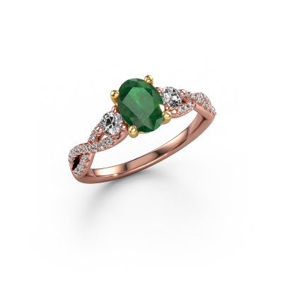 Deze verlovingsring heeft de naam Marilou OVL. Hij is uitgevoerd in 14 Carat rosé goud en gezet met smaragd. Ga jij graag mee met eigentijdse trends? En wil je dit ook terug laten komen in je keuze voor een unieke verlovingsring? Deze smaakvolle verlovingsring is een bijzondere ring, die je zelf naar jouw of haar stijl verder kunt aanpassen. In deze eigentijdse rosé gouden verlovingsring is smaragd verwerkt. Deze smaragd zijn speciaal voor deze verlovingsring geselecteerd, om het mooiste effect te creëren. Onze goudsmid vervaardigt jouw verlovingsring in ons eigen atelier, en plaatst de smaragd heel zorgvuldig in de ring. Vervolgens wordt deze bijgewerkt en gepolijst totdat de perfecte verlovingsring is ontstaan, perfect voor de liefde van jouw leven! Dit juweel wordt speciaal voor jou gemaakt door onze meester goudsmeden in ons eigen atelier.Door onze modernste technieken kunnen wij met uiterste precisie prachtige sieraden te ontwerpen en voor jou personaliseren in de hoogste juwelierskwaliteit. Tegelijkertijd zijn onze verlovingsringen altijd 30% goedkoper dan bij een andere juwelier. Dit komt doordat alle verlovingsringen pas vervaardigd worden op het moment dat deze besteld wordt en we daardoor geen dure voorraden hoeven te hanteren. Mocht je aan een bepaald budget gebonden zijn, kunnen we je graag adviseren welke combinatie je het beste kunt kiezen.Heb je zelf een speciale ring in gedachten, die je wellicht ergens gezien hebt? Je kunt je ideeën altijd met ons bespreken, wij zetten graag jouw ontwerp om tot een unieke verlovingsring. Het ontwerp kun je volgen, omdat wij met 3D tekeningen werken. Hierdoor krijg je al een realistische indruk van hoe jouw ontwerp er in het echt uit komt te zien. Wij sturen je graag een vrijblijvende offerte, waarbij je ongetwijfeld verwonderd zult zijn over de prijs in combinatie met de uitstekende kwaliteit die we aanbieden.Om het voor jou makkelijker te maken kun je ieder besteld sieraad binnen 30 dagen na aflevering eenvoudig weer retour sturen.