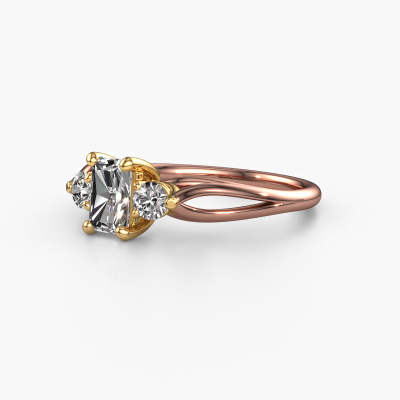 Deze verlovingsring heeft de naam Amie RAD. Hij is uitgevoerd in 14 Carat rosé goud en gezet met diamant. Ga jij graag mee met eigentijdse trends? En wil je dit ook terug laten komen in je keuze voor een unieke verlovingsring? Deze sprankelende verlovingsring is een bijzondere ring, die je zelf naar jouw of haar stijl verder kunt aanpassen. In deze exclusieve rosé gouden verlovingsring is diamant verwerkt. Deze diamanten zijn speciaal voor deze verlovingsring geselecteerd, om het mooiste effect te creëren. Onze goudsmid vervaardigt jouw verlovingsring in ons eigen atelier, en plaatst de diamant heel zorgvuldig in de ring. Vervolgens wordt deze bijgewerkt en gepolijst totdat de perfecte verlovingsring is ontstaan, perfect voor de liefde van jouw leven! Dit juweel wordt speciaal voor jou gemaakt door onze meester goudsmeden in ons eigen atelier.Wellicht is het je opgevallen dat onze prijzen gemiddeld 30% lager liggen dan bij een andere juwelier. En dat terwijl de kwaliteit in de meeste gevallen nog beter is! Dit komt doordat onze goudsmeden je verlovingsring direct in ons eigen atelier vervaardigen. Hierdoor hoeven we geen dure voorraden te hanteren en kunnen we ieder gewenst detail direct op jouw verlovingsring aanbrengen.Ons team is iedere dag weer bezig om nieuwe ontwerpen toe te voegen, in samenwerking met onze designers en goudsmeden wordt gekeken hoe we tot het mooiste ontwerp kunnen komen. Wij doen ons best om tot een zo gevarieerd mogelijk aanbod te komen. Wellicht heb je zelf al een mooi idee van een sieraad dat je ooit wel eens gezien hebt. Neem dan eens vrijblijvend contact met ons op. Wij maken een offerte voor je op waarbij wij vrij zeker zijn dat we wat betreft kwaliteit en prijs jou versteld zullen laten staan.Om het voor jou makkelijker te maken kun je ieder besteld sieraad binnen 30 dagen na aflevering eenvoudig weer retour sturen.