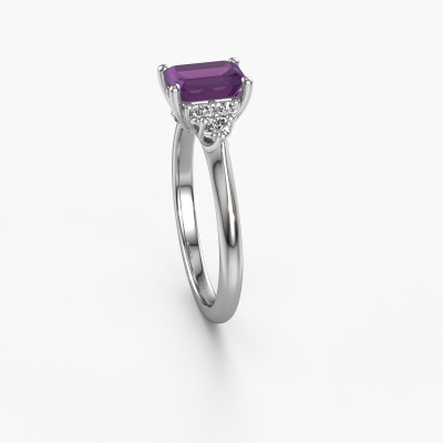 Deze smaakvolle verlovingsring heeft de naam Felipa EME. Deze ring, uitgevoerd in platina is gezet met 7x5 mm amethist. Er is één persoon in je leven die er voor jou uit springt, waar je hart sneller van klopt, die echt uniek voor jou is. En juist deze persoon verdient iets speciaals, iets unieks dat speciaal voor haar vervaardigd is. Wij vermoeden dat deze verlovingsring heel mooi in dit plaatje past. Ieder detail van deze exclusieve platina 3 steens verlovingsring wordt met de hand samengesteld, bijgewerkt en gepolijst door onze goudsmid in het atelier beneden. Ons doel is dat de vormgeving en samenstelling van de verlovingsring de prachtige amethisten versterkt en laat stralen. Een heel secuur werkje, dat uiteindelijk een prachtig resultaat heeft. En dat is precies waar wij voor willen gaan, daar worden wij enthousiast van. Het leuke van onze configurator is dat je zelf je juweel kunt samenstellen tot een eigen persoonlijk juweel. Deze 3 steens verlovingsring is uitgevoerd in de edelmetaal combinatie platina met platina, maar u kunt dus ook uit andere kleuren kiezen. Ieder juweel is gemaakt om aan jouw vinger te stralen, ieder sieraad wordt met liefde door onze goudsmeden met de hand gemaakt.Door het gebruik van de modernste technieken, gecombineerd met ambachtelijk vakmanschap kunnen wij alle verlovingsringen zelf in ons atelier maken. Ieder sieraad wordt pas gemaakt nadat deze besteld is. Dit heeft als bijkomend voordeel dat we kunnen leveren tegen een prijs die je nergens anders tegenkomt.Ons team is iedere dag weer bezig om nieuwe ontwerpen toe te voegen, in samenwerking met onze designers en goudsmeden wordt gekeken hoe we tot het mooiste ontwerp kunnen komen. Wij doen ons best om tot een zo gevarieerd mogelijk aanbod te komen. Wellicht heb je zelf al een mooi idee van een sieraad dat je ooit wel eens gezien hebt. Neem dan eens vrijblijvend contact met ons op. Wij maken een offerte voor je op waarbij wij vrij zeker zijn dat we wat betreft kwaliteit en prijs jou versteld zullen laten staan.Om het voor jou makkelijker te maken kun je ieder besteld sieraad binnen 30 dagen na aflevering eenvoudig weer retour sturen.