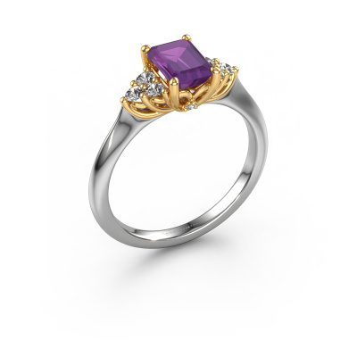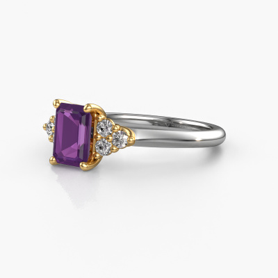Deze smaakvolle verlovingsring heeft de naam Felipa EME. Deze ring, uitgevoerd in 14 Carat witgoud is gezet met 7x5 mm amethist. Er is één persoon in je leven die er voor jou uit springt, waar je hart sneller van klopt, die echt uniek voor jou is. En juist deze persoon verdient iets speciaals, iets unieks dat speciaal voor haar vervaardigd is. Wij vermoeden dat deze verlovingsring heel mooi in dit plaatje past. Ieder detail van deze exclusieve witgouden 3 steens verlovingsring wordt met de hand samengesteld, bijgewerkt en gepolijst door onze goudsmid in het atelier beneden. Ons doel is dat de vormgeving en samenstelling van de verlovingsring de prachtige amethisten versterkt en laat stralen. Een heel secuur werkje, dat uiteindelijk een prachtig resultaat heeft. En dat is precies waar wij voor willen gaan, daar worden wij enthousiast van. Het leuke van onze configurator is dat je zelf je juweel kunt samenstellen tot een eigen persoonlijk juweel. Deze 3 steens verlovingsring is uitgevoerd in de edelmetaal combinatie witgoud met goud, maar u kunt dus ook uit andere kleuren kiezen. Ieder juweel is gemaakt om aan jouw vinger te stralen, ieder sieraad wordt met liefde door onze goudsmeden met de hand gemaakt.Door het gebruik van de modernste technieken, gecombineerd met ambachtelijk vakmanschap kunnen wij alle verlovingsringen zelf in ons atelier maken. Ieder sieraad wordt pas gemaakt nadat deze besteld is. Dit heeft als bijkomend voordeel dat we kunnen leveren tegen een prijs die je nergens anders tegenkomt.Ons team is iedere dag weer bezig om nieuwe ontwerpen toe te voegen, in samenwerking met onze designers en goudsmeden wordt gekeken hoe we tot het mooiste ontwerp kunnen komen. Wij doen ons best om tot een zo gevarieerd mogelijk aanbod te komen. Wellicht heb je zelf al een mooi idee van een sieraad dat je ooit wel eens gezien hebt. Neem dan eens vrijblijvend contact met ons op. Wij maken een offerte voor je op waarbij wij vrij zeker zijn dat we wat betreft kwaliteit en prijs jou versteld zullen laten staan.Om het voor jou makkelijker te maken kun je ieder besteld sieraad binnen 30 dagen na aflevering eenvoudig weer retour sturen.