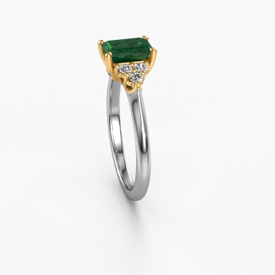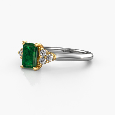 Deze smaakvolle verlovingsring heeft de naam Felipa EME. Deze ring, uitgevoerd in 14 Carat witgoud is gezet met 7x5 mm smaragd. Er is één persoon in je leven die er voor jou uit springt, waar je hart sneller van klopt, die echt uniek voor jou is. En juist deze persoon verdient iets speciaals, iets unieks dat speciaal voor haar vervaardigd is. Wij vermoeden dat deze verlovingsring heel mooi in dit plaatje past. Ieder detail van deze exclusieve witgouden 3 steens verlovingsring wordt met de hand samengesteld, bijgewerkt en gepolijst door onze goudsmid in het atelier beneden. Ons doel is dat de vormgeving en samenstelling van de verlovingsring de prachtige smaragd versterkt en laat stralen. Een heel secuur werkje, dat uiteindelijk een prachtig resultaat heeft. En dat is precies waar wij voor willen gaan, daar worden wij enthousiast van. Het leuke van onze configurator is dat je zelf je juweel kunt samenstellen tot een eigen persoonlijk juweel. Deze 3 steens verlovingsring is uitgevoerd in de edelmetaal combinatie witgoud met goud, maar u kunt dus ook uit andere kleuren kiezen. Ieder juweel is gemaakt om aan jouw vinger te stralen, ieder sieraad wordt met liefde door onze goudsmeden met de hand gemaakt.Door het gebruik van de modernste technieken, gecombineerd met ambachtelijk vakmanschap kunnen wij alle verlovingsringen zelf in ons atelier maken. Ieder sieraad wordt pas gemaakt nadat deze besteld is. Dit heeft als bijkomend voordeel dat we kunnen leveren tegen een prijs die je nergens anders tegenkomt.Ons team is iedere dag weer bezig om nieuwe ontwerpen toe te voegen, in samenwerking met onze designers en goudsmeden wordt gekeken hoe we tot het mooiste ontwerp kunnen komen. Wij doen ons best om tot een zo gevarieerd mogelijk aanbod te komen. Wellicht heb je zelf al een mooi idee van een sieraad dat je ooit wel eens gezien hebt. Neem dan eens vrijblijvend contact met ons op. Wij maken een offerte voor je op waarbij wij vrij zeker zijn dat we wat betreft kwaliteit en prijs jou versteld zullen laten staan.Om het voor jou makkelijker te maken kun je ieder besteld sieraad binnen 30 dagen na aflevering eenvoudig weer retour sturen.