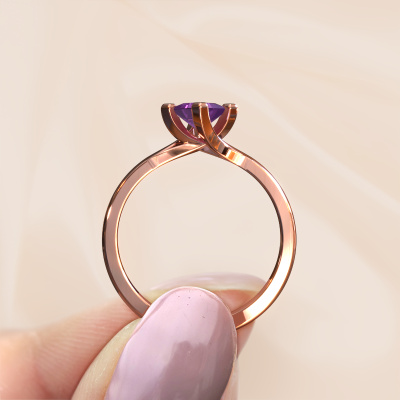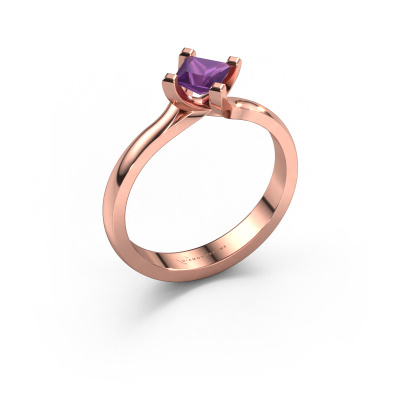 Voor jou is er maar één! Zij is zeldzaam, uniek en puur... Deze bijzondere moderne rosé gouden solitaire ring met amethist onderstreept deze karaktereigenschappen heel prachtig. Deze amethist is zorgvuldig geselecteerd door onze goudsmeden, en is net als je geliefde uniek. Wat is mooier om haar dit symbool te schenken bij jouw aanzoek? Bovenstaande verlovings ring heeft de naam Dewi Square, dit type verlovings ring noemen we een solitaire ring omdat hij een enkele edelsteen bevat. De verlovings ring is uitgevoerd in 14 Carat rosé goud en heeft een princess amethist ter grootte van 4 mm. Ieder juweel wordt speciaal voor jou gemaakt door onze meester goudsmeden in ons eigen atelier.Door het gebruik van de modernste technieken, gecombineerd met ambachtelijk vakmanschap kunnen wij alle verlovings ringen zelf in ons atelier maken. Ieder sieraad wordt pas gemaakt nadat deze besteld is. Dit heeft als bijkomend voordeel dat we kunnen leveren tegen een prijs die je nergens anders tegenkomt.Iedere dag is ons team van goudsmeden en sieradenontwerpers aan het werk om nieuwe sieraden te creëren. Het kan zijn dat je ergens een moderne verlovings ring gezien hebt, die je als basis wilt nemen bij het ontwerpen van jouw unieke ring. Neem gerust contact met ons op en we zullen je een aanbod doen, waar je vrijwel zeker verwonderd zult zijn over de kwaliteit en de prijs.Om het voor jou makkelijker te maken kun je ieder besteld sieraad binnen 30 dagen na aflevering eenvoudig weer retour sturen.