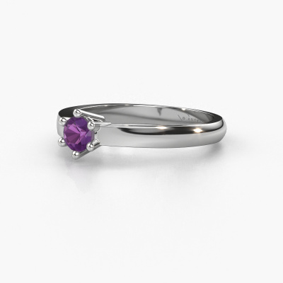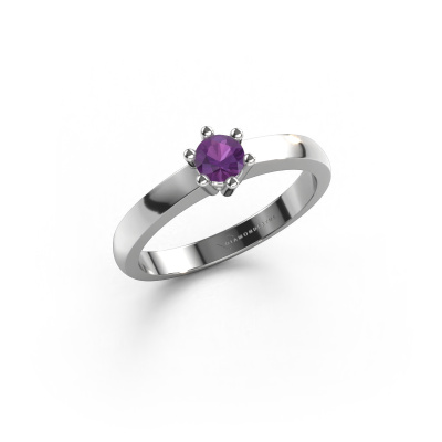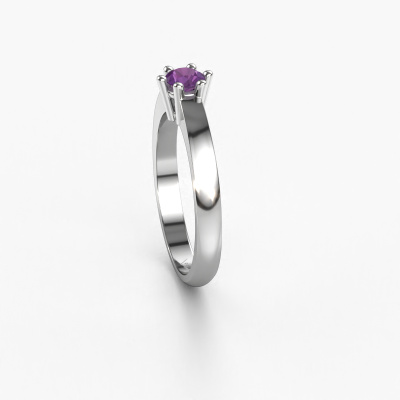 Bovenstaande verlovingsring heeft de naam Luna 1, dit type verlovingsring noemen we een solitaire ring omdat hij een enkele edelsteen bevat. De verlovingsring is uitgevoerd in platina en heeft een ronde amethist ter grootte van 3.7 mm. Het leuke van onze configurator is dat je zelf je juweel kunt samenstellen tot een eigen persoonlijk juweel. Deze solitaire ring is uitgevoerd in de edelmetaal combinatie platina met platina, maar u kunt dus ook uit andere kleuren kiezen. Ieder juweel wordt met passie en liefde gemaakt door één van onze meestergoudsmeden.De solitaire verlovingsring is een bijzondere verlovingsring. Juist doordat de chatonzetting open is, creëert de lichtinval een schitterend effect op de edelsteen. Omdat de gekozen edelsteen hoog op de verlovingsring geplaatst wordt, wordt deze klassieke verlovingsring een prachtige eyecatcher. Met veel zorgvuldigheid vervaardigen wij alle details in deze solitaire verlovingsring met de hand, zodat jij binnenkort je aanzoek kunt bekronen met een unieke ring, speciaal voor de liefde van jouw leven!Onze goudsmeden vervaardigen pas je Luna 1 verlovingsring, zodra je deze besteld hebt. We hebben geen voorraden. Het voordeel hiervan is dat we de voorraad niet door hoeven te berekenen in de prijs, en kunnen daardoor sieraden leveren tegen een bijzonder lage prijs.Iedere dag is ons team van goudsmeden en sieradenontwerpers aan het werk om nieuwe sieraden te creëren. Het kan zijn dat je ergens een klassieke verlovingsring gezien hebt, die je als basis wilt nemen bij het ontwerpen van jouw unieke ring. Neem gerust contact met ons op en we zullen je een aanbod doen, waar je vrijwel zeker verwonderd zult zijn over de kwaliteit en de prijs.Om het voor jou makkelijker te maken kun je ieder besteld sieraad binnen 30 dagen na aflevering eenvoudig weer retour sturen.