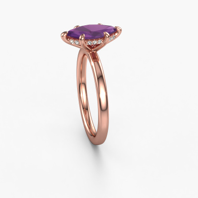 Deze verlovingsring heeft de naam Simone MRQ 2. Deze verlovingsring uitgevoerd in 14 Carat rosé goud is gezet met 11x5.5 mm amethist. Wat maakt jullie relatie uniek? Wat is het, dat jij haar wilt gaan vragen om jouw vrouw te worden? Die unieke band die jullie samen hebben, kun je laten weerspiegelen in een unieke ring. Een unieke solitaire verlovingsring die alleen voor haar vervaardigd is. En daarom past deze fantasie verlovingsring heel mooi bij haar. Ieder detail van deze ronde rosé gouden verlovingsring met amethist wordt met de hand samengesteld, bijgewerkt en gepolijst door onze goudsmid in het atelier beneden. Een prachtige verlovingsring is het uiteindelijk resultaat, uniek en perfect gesmeed tot in de kleinste details! Dat is waar onze goudsmeden absoluut voor gaan! Dit juweel wordt speciaal voor jou gemaakt door onze meester goudsmeden in ons eigen atelier.Omdat wij zelf alle verlovingsring maken en direct aan jou leveren kunnen wij je een verlovingsring leveren tegen een prijs die je nergens anders zult tegenkomen. Een ring wordt pas gemaakt als we een bestelling krijgen, hierdoor hebben wij geen dure voorraden en kunnen wij je de beste prijs garanderen. Wij begrijpen dat het kopen van een verlovingsring online spannend is en willen daarom je zoveel mogelijk informeren over alle specifieke eigenschappen van de ring die jij koopt.Iedere dag is ons team van goudsmeden en sieradenontwerpers aan het werk om nieuwe sieraden te creëren. Het kan zijn dat je ergens een fantasie verlovingsring gezien hebt, die je als basis wilt nemen bij het ontwerpen van jouw unieke ring. Neem gerust contact met ons op en we zullen je een aanbod doen, waar je vrijwel zeker verwonderd zult zijn over de kwaliteit en de prijs.Om het voor jou makkelijker te maken kun je ieder besteld sieraad binnen 30 dagen na aflevering eenvoudig weer retour sturen.