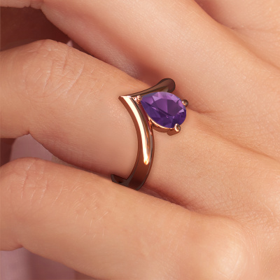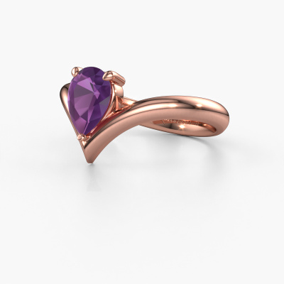 Voor jou is er maar één! Zij is zeldzaam, uniek en puur... Deze bijzondere moderne rosé gouden solitaire ring met amethist onderstreept deze karaktereigenschappen heel prachtig. Deze amethist is zorgvuldig geselecteerd door onze goudsmeden, en is net als je geliefde uniek. Wat is mooier om haar dit symbool te schenken bij jouw aanzoek? Bovenstaande verlovingsring heeft de naam Maddy PER, dit type verlovingsring noemen we een solitaire ring omdat hij een enkele edelsteen bevat. De verlovingsring is uitgevoerd in 14 Carat rosé goud en heeft een peer amethist ter grootte van 8x6 mm. Ieder juweel wordt met passie en liefde gemaakt door één van onze meestergoudsmeden.Wist je dat we een beste prijs garantie geven voor jouw verlovingsring? Dit is mogelijk omdat al onze sieraden met de hand gemaakt worden in ons eigen atelier. We hebben geen dure voorraden, en we maken pas je verlovingsring op het moment dat je besteld hebt. Doordat we de hele productie zelf in de hand hebben, kunnen wij je goed informeren over alle eigenschappen van deze ring. Juist omdat het kopen van een verlovingsring online spannend is, begrijpen wij dat het fijn is om alle kenmerken te weten van jouw ring.Ons team is iedere dag weer bezig om nieuwe ontwerpen toe te voegen, in samenwerking met onze designers en goudsmeden wordt gekeken hoe we tot het mooiste ontwerp kunnen komen. Wij doen ons best om tot een zo gevarieerd mogelijk aanbod te komen. Wellicht heb je zelf al een mooi idee van een sieraad dat je ooit wel eens gezien hebt. Neem dan eens vrijblijvend contact met ons op. Wij maken een offerte voor je op waarbij wij vrij zeker zijn dat we wat betreft kwaliteit en prijs jou versteld zullen laten staan.Om het voor jou makkelijker te maken kun je ieder besteld sieraad binnen 30 dagen na aflevering eenvoudig weer retour sturen.