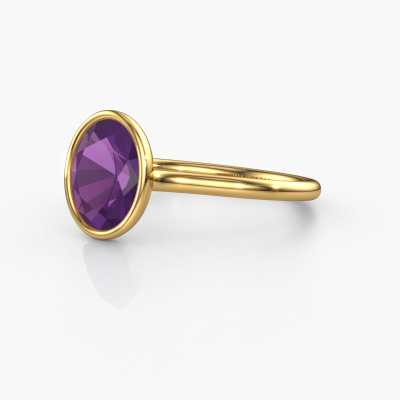 Deze verlovingsring heeft de naam Lavon OVL. Deze strakke verlovingsring uitgevoerd, in 14 Carat goud is gezet met 9x7 mm amethist. Deze exclusieve gouden bezel zetting verlovingsring is een puur staaltje vakmanschap! Alle kleine details zijn door onze goudsmid met veel geduld en passie vervaardigd. Dit ambacht vraagt een deskundig oog en vaardige hand om deze verlovingsring met uiterste precisie samen te stellen. En dat is precies waar onze goudsmeden enthousiast van worden! De prachtige amethisten zijn op een bijzondere manier gezet, zodat deze nog beter tot zijn recht komen. Dit geeft de verlovingsring extra allure. De verlovingsring is al uniek door zijn natuurlijke edelsteen, die we speciaal geselecteerd hebben voor deze ring. Daarnaast kun je zelf de samenstelling kiezen van het edelmetaal, waardoor je uiteindelijk een unieke verlovingsring hebt gecreëerd voor de meest exclusieve vrouw in je leven! Dit juweel is gemaakt om aan je vinger te stralen, ieder sieraad wordt met liefde door onze goudsmeden met de hand gemaakt.Door onze modernste technieken kunnen wij met uiterste precisie prachtige sieraden te ontwerpen en voor jou personaliseren in de hoogste juwelierskwaliteit. Tegelijkertijd zijn onze verlovingsringen altijd 30% goedkoper dan bij een andere juwelier. Dit komt doordat alle verlovingsringen pas vervaardigd worden op het moment dat deze besteld wordt en we daardoor geen dure voorraden hoeven te hanteren. Mocht je aan een bepaald budget gebonden zijn, kunnen we je graag adviseren welke combinatie je het beste kunt kiezen.Ons team is iedere dag weer bezig om nieuwe ontwerpen toe te voegen, in samenwerking met onze designers en goudsmeden wordt gekeken hoe we tot het mooiste ontwerp kunnen komen. Wij doen ons best om tot een zo gevarieerd mogelijk aanbod te komen. Wellicht heb je zelf al een mooi idee van een sieraad dat je ooit wel eens gezien hebt. Neem dan eens vrijblijvend contact met ons op. Wij maken een offerte voor je op waarbij wij vrij zeker zijn dat we wat betreft kwaliteit en prijs jou versteld zullen laten staan.Om het voor jou makkelijker te maken kun je ieder besteld sieraad binnen 30 dagen na aflevering eenvoudig weer retour sturen.