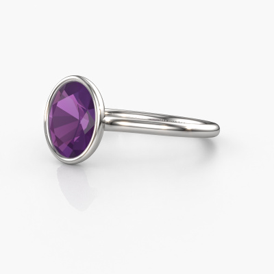 Deze verlovingsring heeft de naam Lavon OVL. Deze strakke verlovingsring uitgevoerd, in platina is gezet met 9x7 mm amethist. Deze exclusieve platina bezel zetting verlovingsring is een puur staaltje vakmanschap! Alle kleine details zijn door onze goudsmid met veel geduld en passie vervaardigd. Dit ambacht vraagt een deskundig oog en vaardige hand om deze verlovingsring met uiterste precisie samen te stellen. En dat is precies waar onze goudsmeden enthousiast van worden! De prachtige amethisten zijn op een bijzondere manier gezet, zodat deze nog beter tot zijn recht komen. Dit geeft de verlovingsring extra allure. De verlovingsring is al uniek door zijn natuurlijke edelsteen, die we speciaal geselecteerd hebben voor deze ring. Daarnaast kun je zelf de samenstelling kiezen van het edelmetaal, waardoor je uiteindelijk een unieke verlovingsring hebt gecreëerd voor de meest exclusieve vrouw in je leven! Dit juweel is gemaakt om aan je vinger te stralen, ieder sieraad wordt met liefde door onze goudsmeden met de hand gemaakt.Door onze modernste technieken kunnen wij met uiterste precisie prachtige sieraden te ontwerpen en voor jou personaliseren in de hoogste juwelierskwaliteit. Tegelijkertijd zijn onze verlovingsringen altijd 30% goedkoper dan bij een andere juwelier. Dit komt doordat alle verlovingsringen pas vervaardigd worden op het moment dat deze besteld wordt en we daardoor geen dure voorraden hoeven te hanteren. Mocht je aan een bepaald budget gebonden zijn, kunnen we je graag adviseren welke combinatie je het beste kunt kiezen.Ons team is iedere dag weer bezig om nieuwe ontwerpen toe te voegen, in samenwerking met onze designers en goudsmeden wordt gekeken hoe we tot het mooiste ontwerp kunnen komen. Wij doen ons best om tot een zo gevarieerd mogelijk aanbod te komen. Wellicht heb je zelf al een mooi idee van een sieraad dat je ooit wel eens gezien hebt. Neem dan eens vrijblijvend contact met ons op. Wij maken een offerte voor je op waarbij wij vrij zeker zijn dat we wat betreft kwaliteit en prijs jou versteld zullen laten staan.Om het voor jou makkelijker te maken kun je ieder besteld sieraad binnen 30 dagen na aflevering eenvoudig weer retour sturen.