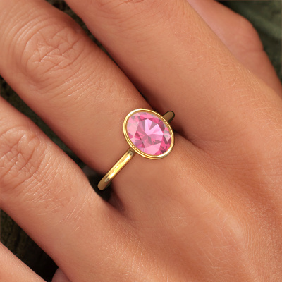 Deze verlovingsring heeft de naam Lavon OVL. Deze strakke verlovingsring uitgevoerd, in 14 Carat goud is gezet met 9x7 mm roze saffier. Deze exclusieve gouden bezel zetting verlovingsring is een puur staaltje vakmanschap! Alle kleine details zijn door onze goudsmid met veel geduld en passie vervaardigd. Dit ambacht vraagt een deskundig oog en vaardige hand om deze verlovingsring met uiterste precisie samen te stellen. En dat is precies waar onze goudsmeden enthousiast van worden! De prachtige roze saffier zijn op een bijzondere manier gezet, zodat deze nog beter tot zijn recht komen. Dit geeft de verlovingsring extra allure. De verlovingsring is al uniek door zijn natuurlijke edelsteen, die we speciaal geselecteerd hebben voor deze ring. Daarnaast kun je zelf de samenstelling kiezen van het edelmetaal, waardoor je uiteindelijk een unieke verlovingsring hebt gecreëerd voor de meest exclusieve vrouw in je leven! Dit juweel is gemaakt om aan je vinger te stralen, ieder sieraad wordt met liefde door onze goudsmeden met de hand gemaakt.Door onze modernste technieken kunnen wij met uiterste precisie prachtige sieraden te ontwerpen en voor jou personaliseren in de hoogste juwelierskwaliteit. Tegelijkertijd zijn onze verlovingsringen altijd 30% goedkoper dan bij een andere juwelier. Dit komt doordat alle verlovingsringen pas vervaardigd worden op het moment dat deze besteld wordt en we daardoor geen dure voorraden hoeven te hanteren. Mocht je aan een bepaald budget gebonden zijn, kunnen we je graag adviseren welke combinatie je het beste kunt kiezen.Ons team is iedere dag weer bezig om nieuwe ontwerpen toe te voegen, in samenwerking met onze designers en goudsmeden wordt gekeken hoe we tot het mooiste ontwerp kunnen komen. Wij doen ons best om tot een zo gevarieerd mogelijk aanbod te komen. Wellicht heb je zelf al een mooi idee van een sieraad dat je ooit wel eens gezien hebt. Neem dan eens vrijblijvend contact met ons op. Wij maken een offerte voor je op waarbij wij vrij zeker zijn dat we wat betreft kwaliteit en prijs jou versteld zullen laten staan.Om het voor jou makkelijker te maken kun je ieder besteld sieraad binnen 30 dagen na aflevering eenvoudig weer retour sturen.