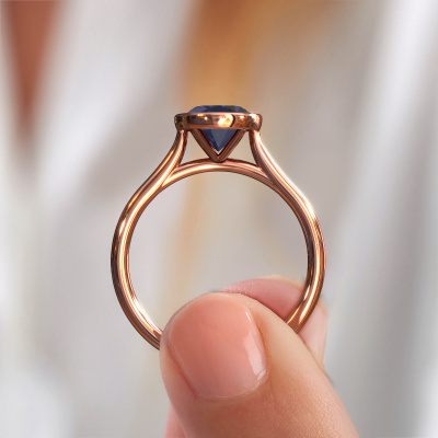 Deze verlovingsring heeft de naam Lavon OVL. Deze strakke verlovingsring uitgevoerd, in 14 Carat rosé goud is gezet met 9x7 mm saffier. Deze exclusieve rosé gouden bezel zetting verlovingsring is een puur staaltje vakmanschap! Alle kleine details zijn door onze goudsmid met veel geduld en passie vervaardigd. Dit ambacht vraagt een deskundig oog en vaardige hand om deze verlovingsring met uiterste precisie samen te stellen. En dat is precies waar onze goudsmeden enthousiast van worden! De prachtige saffier zijn op een bijzondere manier gezet, zodat deze nog beter tot zijn recht komen. Dit geeft de verlovingsring extra allure. De verlovingsring is al uniek door zijn natuurlijke edelsteen, die we speciaal geselecteerd hebben voor deze ring. Daarnaast kun je zelf de samenstelling kiezen van het edelmetaal, waardoor je uiteindelijk een unieke verlovingsring hebt gecreëerd voor de meest exclusieve vrouw in je leven! Dit juweel is gemaakt om aan je vinger te stralen, ieder sieraad wordt met liefde door onze goudsmeden met de hand gemaakt.Door onze modernste technieken kunnen wij met uiterste precisie prachtige sieraden te ontwerpen en voor jou personaliseren in de hoogste juwelierskwaliteit. Tegelijkertijd zijn onze verlovingsringen altijd 30% goedkoper dan bij een andere juwelier. Dit komt doordat alle verlovingsringen pas vervaardigd worden op het moment dat deze besteld wordt en we daardoor geen dure voorraden hoeven te hanteren. Mocht je aan een bepaald budget gebonden zijn, kunnen we je graag adviseren welke combinatie je het beste kunt kiezen.Ons team is iedere dag weer bezig om nieuwe ontwerpen toe te voegen, in samenwerking met onze designers en goudsmeden wordt gekeken hoe we tot het mooiste ontwerp kunnen komen. Wij doen ons best om tot een zo gevarieerd mogelijk aanbod te komen. Wellicht heb je zelf al een mooi idee van een sieraad dat je ooit wel eens gezien hebt. Neem dan eens vrijblijvend contact met ons op. Wij maken een offerte voor je op waarbij wij vrij zeker zijn dat we wat betreft kwaliteit en prijs jou versteld zullen laten staan.Om het voor jou makkelijker te maken kun je ieder besteld sieraad binnen 30 dagen na aflevering eenvoudig weer retour sturen.