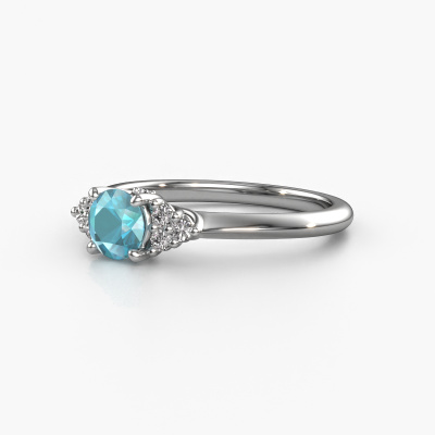 Deze verlovingsring heeft de naam Felipa RND. Deze verlovingsring uitgevoerd in platina is gezet met 5 mm blauw topaas. Wat maakt jullie relatie uniek? Wat is het, dat jij haar wilt gaan vragen om jouw vrouw te worden? Die unieke band die jullie samen hebben, kun je laten weerspiegelen in een unieke ring. Een unieke 3 steens verlovingsring die alleen voor haar vervaardigd is. En daarom past deze fantasie verlovingsring heel mooi bij haar. Ieder detail van deze opengewerkte platina verlovingsring met blauw topaas wordt met de hand samengesteld, bijgewerkt en gepolijst door onze goudsmid in het atelier beneden. Een prachtige verlovingsring is het uiteindelijk resultaat, uniek en perfect gesmeed tot in de kleinste details! Dat is waar onze goudsmeden absoluut voor gaan! Dit juweel wordt speciaal voor jou gemaakt door onze meester goudsmeden in ons eigen atelier.Wist je dat we een beste prijs garantie geven voor jouw verlovingsring? Dit is mogelijk omdat al onze sieraden met de hand gemaakt worden in ons eigen atelier. We hebben geen dure voorraden, en we maken pas je verlovingsring op het moment dat je besteld hebt. Doordat we de hele productie zelf in de hand hebben, kunnen wij je goed informeren over alle eigenschappen van deze ring. Juist omdat het kopen van een verlovingsring online spannend is, begrijpen wij dat het fijn is om alle kenmerken te weten van jouw ring.Heb je zelf een specifieke verlovingsring ergens gezien, die je graag aan jouw geliefde zou willen geven? Bespreek gerust jouw ideeën met onze sieradenontwerpers, want wij zetten graag jouw ontwerp om tot een fantasie verlovingsring. Je kunt tijdens het ontwerpproces steeds meekijken, omdat wij met 3D tekeningen werken. Je krijgt hierdoor al een realistische indruk van hoe jouw ontwerp er in werkelijkheid uit komt te zien. Daarbij kun je een dummy vooraf bestellen. Een dummy is een kunststof ring, die precies dezelfde vormen heeft als jouw uiteindelijke ontwerp. Je kunt deze passen en zien of de breedte en dikte bijvoorbeeld naar wens zijn. Wij sturen je graag een vrijblijvende offerte, waarbij je ongetwijfeld versteld zult staan over de prijs en de kwaliteit van de ring en edelstenen.Om het voor jou makkelijker te maken kun je ieder besteld sieraad binnen 30 dagen na aflevering eenvoudig weer retour sturen.