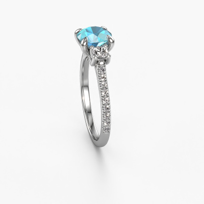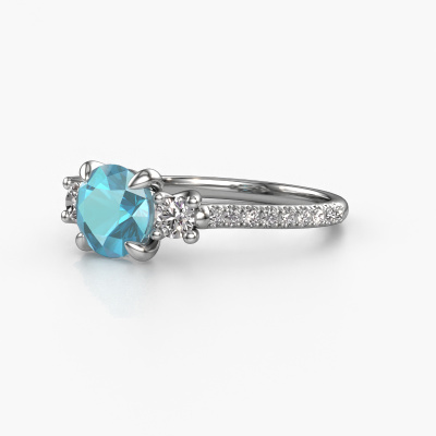 Deze verlovingsring heeft de naam Jesica. Deze verlovingsring uitgevoerd in 14 Carat witgoud is gezet met 6.8 mm blauw topaas. Wat maakt jullie relatie uniek? Wat is het, dat jij haar wilt gaan vragen om jouw vrouw te worden? Die unieke band die jullie samen hebben, kun je laten weerspiegelen in een unieke ring. Een unieke 3 steens verlovingsring die alleen voor haar vervaardigd is. En daarom past deze klassieke verlovingsring heel mooi bij haar. Ieder detail van deze gracieuze witgouden verlovingsring met blauw topaas wordt met de hand samengesteld, bijgewerkt en gepolijst door onze goudsmid in het atelier beneden. Een prachtige verlovingsring is het uiteindelijk resultaat, uniek en perfect gesmeed tot in de kleinste details! Dat is waar onze goudsmeden absoluut voor gaan! Dit juweel is speciaal voor jou gemaakt, met aandacht voor detail en design.Wist je dat we een beste prijs garantie geven voor jouw verlovingsring? Dit is mogelijk omdat al onze sieraden met de hand gemaakt worden in ons eigen atelier. We hebben geen dure voorraden, en we maken pas je verlovingsring op het moment dat je besteld hebt. Doordat we de hele productie zelf in de hand hebben, kunnen wij je goed informeren over alle eigenschappen van deze ring. Juist omdat het kopen van een verlovingsring online spannend is, begrijpen wij dat het fijn is om alle kenmerken te weten van jouw ring.Ons team ontwerpt dagelijks nieuwe ringen in diverse stijlen. Heb je zelf een 3 steens verlovingsring ergens gezien, die jij het liefst aan jouw geliefde zou willen geven? Je kunt altijd jouw ideeën en ontwerp met onze sieradenontwerpers bespreken, want wij zetten graag jouw ontwerp om tot een klassieke verlovingsring. Je kunt tijdens het ontwerpproces steeds meekijken, omdat het ontwerp in een zeer gedetailleerde 3D tekening wordt omgezet. Daarbij kun je een dummy bestellen van het uiteindelijke ontwerp. Een dummy is een kunststof ring, die precies dezelfde vormen heeft als jouw uiteindelijke ontwerp. Je kunt deze passen en zien of de ontworpen verlovingsring helemaal naar jouw wens is. Wij sturen je graag een vrijblijvende offerte, waarbij je ongetwijfeld versteld zult staan over de prijs en de kwaliteit van de ring en edelstenen.Om het voor jou makkelijker te maken kun je ieder besteld sieraad binnen 30 dagen na aflevering eenvoudig weer retour sturen.
