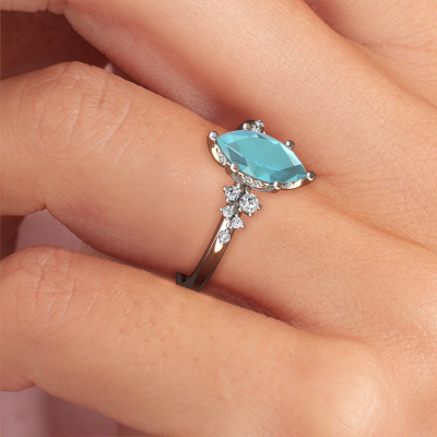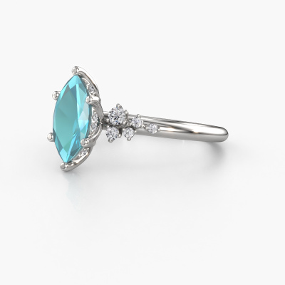 De naam van deze verlovingsring is de Emma MRQ. Hij is gemaakt van platina en gezet met 10x5 mm blauw topaas. Hoe zou je de stijl omschrijven van de liefde van jouw leven? Houdt zij van iets dat net een beetje anders is dan anders? Deze bijzondere