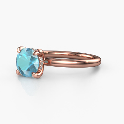 Voor jou is er maar één! Zij is zeldzaam, uniek en puur... Deze bijzondere exclusieve rosé gouden solitaire ring met blauw topaas onderstreept deze karaktereigenschappen heel prachtig. Deze blauw topaas is zorgvuldig geselecteerd door onze goudsmeden, en is net als je geliefde uniek. Wat is mooier om haar dit symbool te schenken bij jouw aanzoek? Bovenstaande verlovingsring heeft de naam Simone RND 2, dit type verlovingsring noemen we een solitaire ring omdat hij een enkele edelsteen bevat. De verlovingsring is uitgevoerd in 14 Carat rosé goud en heeft een ronde blauw topaas ter grootte van 7.3 mm. Ieder juweel is uniek, doordat je deze ring geheel naar eigen wensen kunt samenstellen.Wist je dat we een beste prijs garantie geven voor jouw verlovingsring? Dit is mogelijk omdat al onze sieraden met de hand gemaakt worden in ons eigen atelier. We hebben geen dure voorraden, en we maken pas je verlovingsring op het moment dat je besteld hebt. Doordat we de hele productie zelf in de hand hebben, kunnen wij je goed informeren over alle eigenschappen van deze ring. Juist omdat het kopen van een verlovingsring online spannend is, begrijpen wij dat het fijn is om alle kenmerken te weten van jouw ring.Ons team is iedere dag weer bezig om nieuwe ontwerpen toe te voegen, in samenwerking met onze designers en goudsmeden wordt gekeken hoe we tot het mooiste ontwerp kunnen komen. Wij doen ons best om tot een zo gevarieerd mogelijk aanbod te komen. Wellicht heb je zelf al een mooi idee van een sieraad dat je ooit wel eens gezien hebt. Neem dan eens vrijblijvend contact met ons op. Wij maken een offerte voor je op waarbij wij vrij zeker zijn dat we wat betreft kwaliteit en prijs jou versteld zullen laten staan.Om het voor jou makkelijker te maken kun je ieder besteld sieraad binnen 30 dagen na aflevering eenvoudig weer retour sturen.