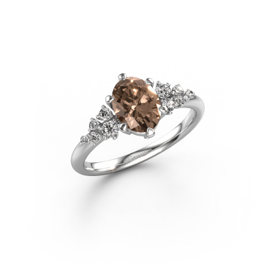 Bovenstaande verlovingsring heeft de naam Royce OVL. Dit type verlovingsring noemen we een pavé solitaire verlovingsring omdat hij een enkele middensteen heeft waarbij de banden van de verlovingsring ook volgezet zijn. Deze verlovingsring is uitgevoerd in platina en heeft als middensteen een ovale bruine diamant ter grootte van 1.10 crt, en in de zijbanden zijn lab-grown diamanten gezet. Ieder juweel wordt met passie en liefde gemaakt door één van onze meestergoudsmeden.. Deze fantasie platina pavé solitaire verlovingsring heeft een schitterende ovale bruine diamant als center steen, waarbij in de band nog meer lab-grown diamanten zijn gezet om de middensteen nog meer te accentueren. Doordat de zetting van de pootjes om de bruine diamant open is, vangt de bruine diamant het licht van alle kanten op en schittert hierdoor optimaal. Hierboven kun je zien hoe onze goudsmid de verlovingsring heel precies tot in de kleinste details heeft bewerkt, zodat de wat hoger gelegen bruine diamant een echte eyecatcher is. Wat een prachtige verlovingsring om te geven bij je aanzoek aan de liefde van jouw leven, aan jouw stralende middelpunt!Wist je dat we een beste prijs garantie geven voor jouw verlovingsring? Dit is mogelijk omdat al onze sieraden met de hand gemaakt worden in ons eigen atelier. We hebben geen dure voorraden, en we maken pas je verlovingsring op het moment dat je besteld hebt. Doordat we de hele productie zelf in de hand hebben, kunnen wij je goed informeren over alle eigenschappen van deze ring. Juist omdat het kopen van een verlovingsring online spannend is, begrijpen wij dat het fijn is om alle kenmerken te weten van jouw ring.Heb je zelf een specifieke verlovingsring ergens gezien, die je graag aan jouw geliefde zou willen geven? Bespreek gerust jouw ideeën met onze sieradenontwerpers, want wij zetten graag jouw ontwerp om tot een fantasie verlovingsring. Je kunt tijdens het ontwerpproces steeds meekijken, omdat wij met 3D tekeningen werken. Je krijgt hierdoor al een realistische indruk van hoe jouw ontwerp er in werkelijkheid uit komt te zien. Daarbij kun je een dummy vooraf bestellen. Een dummy is een kunststof ring, die precies dezelfde vormen heeft als jouw uiteindelijke ontwerp. Je kunt deze passen en zien of de breedte en dikte bijvoorbeeld naar wens zijn. Wij sturen je graag een vrijblijvende offerte, waarbij je ongetwijfeld versteld zult staan over de prijs en de kwaliteit van de ring en edelstenen.Om het voor jou makkelijker te maken kun je ieder besteld sieraad binnen 30 dagen na aflevering eenvoudig weer retour sturen.