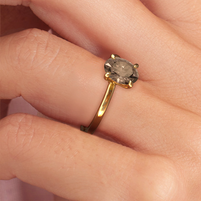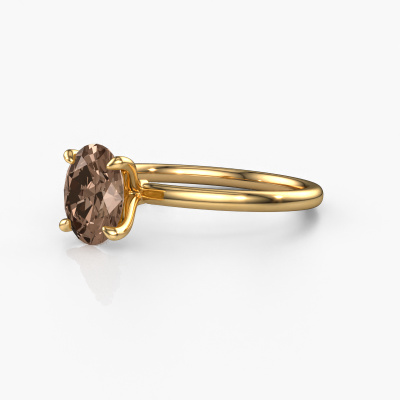 Bovenstaande verlovingsring heeft de naam Crystal OVL 1, dit type verlovingsring noemen we een solitaire ring omdat hij een enkele edelsteen bevat. De verlovingsring is uitgevoerd in 14 Carat goud en heeft een ovale bruine diamant ter grootte van 1.10 crt. Het leuke van onze configurator is dat je zelf je juweel kunt samenstellen tot een eigen persoonlijk juweel. Deze solitaire ring is uitgevoerd in de edelmetaal combinatie goud met goud, maar u kunt dus ook uit andere kleuren kiezen. Ieder juweel is gemaakt om aan je vinger te stralen, ieder sieraad wordt met liefde door onze goudsmeden met de hand gemaakt.De solitaire verlovingsring is een bijzondere verlovingsring. Juist doordat de chatonzetting open is, creëert de lichtinval een schitterend effect op de edelsteen. Omdat de gekozen edelsteen hoog op de verlovingsring geplaatst wordt, wordt deze klassieke verlovingsring een prachtige eyecatcher. Met veel zorgvuldigheid vervaardigen wij alle details in deze solitaire verlovingsring met de hand, zodat jij binnenkort je aanzoek kunt bekronen met een unieke ring, speciaal voor de liefde van jouw leven!Omdat wij zelf alle verlovingsring maken en direct aan jou leveren kunnen wij je een verlovingsring leveren tegen een prijs die je nergens anders zult tegenkomen. Een ring wordt pas gemaakt als we een bestelling krijgen, hierdoor hebben wij geen dure voorraden en kunnen wij je de beste prijs garanderen. Wij begrijpen dat het kopen van een verlovingsring online spannend is en willen daarom je zoveel mogelijk informeren over alle specifieke eigenschappen van de ring die jij koopt.Ons team is iedere dag weer bezig om nieuwe ontwerpen toe te voegen, in samenwerking met onze designers en goudsmeden wordt gekeken hoe we tot het mooiste ontwerp kunnen komen. Wij doen ons best om tot een zo gevarieerd mogelijk aanbod te komen. Wellicht heb je zelf al een mooi idee van een sieraad dat je ooit wel eens gezien hebt. Neem dan eens vrijblijvend contact met ons op. Wij maken een offerte voor je op waarbij wij vrij zeker zijn dat we wat betreft kwaliteit en prijs jou versteld zullen laten staan.Om het voor jou makkelijker te maken kun je ieder besteld sieraad binnen 30 dagen na aflevering eenvoudig weer retour sturen.