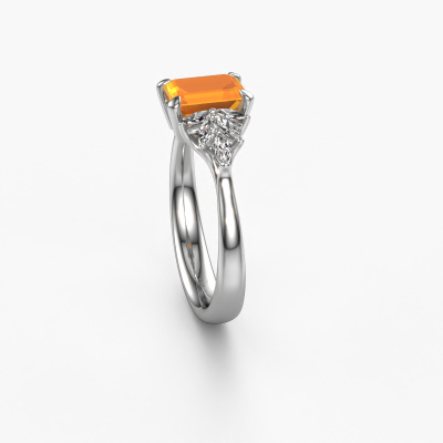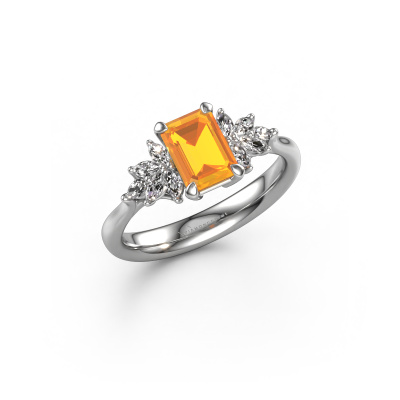 Deze verlovingsring heeft de naam Fiona EME. Deze verlovingsring uitgevoerd in 14 Carat witgoud is gezet met 7x5 mm citrien. Wat maakt jullie relatie uniek? Wat is het, dat jij haar wilt gaan vragen om jouw vrouw te worden? Die unieke band die jullie samen hebben, kun je laten weerspiegelen in een unieke ring. Een unieke pavé solitaire verlovingsring die alleen voor haar vervaardigd is. En daarom past deze vintage verlovingsring heel mooi bij haar. Ieder detail van deze bijzondere witgouden verlovingsring met citrien wordt met de hand samengesteld, bijgewerkt en gepolijst door onze goudsmid in het atelier beneden. Een prachtige verlovingsring is het uiteindelijk resultaat, uniek en perfect gesmeed tot in de kleinste details! Dat is waar onze goudsmeden absoluut voor gaan! Dit juweel is gemaakt om aan je vinger te stralen, ieder sieraad wordt met liefde door onze goudsmeden met de hand gemaakt.Omdat wij zelf alle verlovingsring maken en direct aan jou leveren kunnen wij je een verlovingsring leveren tegen een prijs die je nergens anders zult tegenkomen. Een ring wordt pas gemaakt als we een bestelling krijgen, hierdoor hebben wij geen dure voorraden en kunnen wij je de beste prijs garanderen. Wij begrijpen dat het kopen van een verlovingsring online spannend is en willen daarom je zoveel mogelijk informeren over alle specifieke eigenschappen van de ring die jij koopt.Ons team is iedere dag weer bezig om nieuwe ontwerpen toe te voegen, in samenwerking met onze designers en goudsmeden wordt gekeken hoe we tot het mooiste ontwerp kunnen komen. Wij doen ons best om tot een zo gevarieerd mogelijk aanbod te komen. Wellicht heb je zelf al een mooi idee van een sieraad dat je ooit wel eens gezien hebt. Neem dan eens vrijblijvend contact met ons op. Wij maken een offerte voor je op waarbij wij vrij zeker zijn dat we wat betreft kwaliteit en prijs jou versteld zullen laten staan.Om het voor jou makkelijker te maken kun je ieder besteld sieraad binnen 30 dagen na aflevering eenvoudig weer retour sturen.