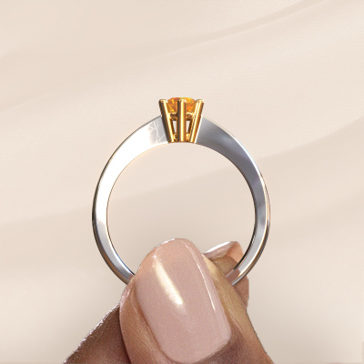 Bovenstaande verlovingsring heeft de naam Luna 1, dit type verlovingsring noemen we een solitaire ring omdat hij een enkele edelsteen bevat. De verlovingsring is uitgevoerd in 14 Carat witgoud en heeft een ronde citrien ter grootte van 3.7 mm. Het leuke van onze configurator is dat je zelf je juweel kunt samenstellen tot een eigen persoonlijk juweel. Deze solitaire ring is uitgevoerd in de edelmetaal combinatie witgoud met goud, maar u kunt dus ook uit andere kleuren kiezen. Ieder juweel wordt met passie en liefde gemaakt door één van onze meestergoudsmeden.De solitaire verlovingsring is een bijzondere verlovingsring. Juist doordat de chatonzetting open is, creëert de lichtinval een schitterend effect op de edelsteen. Omdat de gekozen edelsteen hoog op de verlovingsring geplaatst wordt, wordt deze klassieke verlovingsring een prachtige eyecatcher. Met veel zorgvuldigheid vervaardigen wij alle details in deze solitaire verlovingsring met de hand, zodat jij binnenkort je aanzoek kunt bekronen met een unieke ring, speciaal voor de liefde van jouw leven!Onze goudsmeden vervaardigen pas je Luna 1 verlovingsring, zodra je deze besteld hebt. We hebben geen voorraden. Het voordeel hiervan is dat we de voorraad niet door hoeven te berekenen in de prijs, en kunnen daardoor sieraden leveren tegen een bijzonder lage prijs.Iedere dag is ons team van goudsmeden en sieradenontwerpers aan het werk om nieuwe sieraden te creëren. Het kan zijn dat je ergens een klassieke verlovingsring gezien hebt, die je als basis wilt nemen bij het ontwerpen van jouw unieke ring. Neem gerust contact met ons op en we zullen je een aanbod doen, waar je vrijwel zeker verwonderd zult zijn over de kwaliteit en de prijs.Om het voor jou makkelijker te maken kun je ieder besteld sieraad binnen 30 dagen na aflevering eenvoudig weer retour sturen.