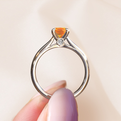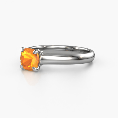 Bovenstaande verlovingsring heeft de naam Valorie cus 1, dit type verlovingsring noemen we een solitaire ring omdat hij een enkele edelsteen bevat. De verlovingsring is uitgevoerd in 14 Carat witgoud en heeft een cushion citrien ter grootte van 6 mm. Het leuke van onze configurator is dat je zelf je juweel kunt samenstellen tot een eigen persoonlijk juweel. Deze solitaire ring is uitgevoerd in de edelmetaal combinatie witgoud met witgoud, maar u kunt dus ook uit andere kleuren kiezen. Ieder juweel is gemaakt om aan jouw vinger te stralen, ieder sieraad wordt met liefde door onze goudsmeden met de hand gemaakt.De solitaire verlovingsring is een bijzondere verlovingsring. Juist doordat de chatonzetting open is, creëert de lichtinval een schitterend effect op de edelsteen. Omdat de gekozen edelsteen hoog op de verlovingsring geplaatst wordt, wordt deze klassieke verlovingsring een prachtige eyecatcher. Met veel zorgvuldigheid vervaardigen wij alle details in deze solitaire verlovingsring met de hand, zodat jij binnenkort je aanzoek kunt bekronen met een unieke ring, speciaal voor de liefde van jouw leven!Wellicht is het je opgevallen dat onze prijzen gemiddeld 30% lager liggen dan bij een andere juwelier. En dat terwijl de kwaliteit in de meeste gevallen nog beter is! Dit komt doordat onze goudsmeden je verlovingsring direct in ons eigen atelier vervaardigen. Hierdoor hoeven we geen dure voorraden te hanteren en kunnen we ieder gewenst detail direct op jouw verlovingsring aanbrengen.Heb je zelf een specifieke verlovingsring ergens gezien, die je graag aan jouw geliefde zou willen geven? Bespreek gerust jouw ideeën met onze sieradenontwerpers, want wij zetten graag jouw ontwerp om tot een klassieke verlovingsring. Je kunt tijdens het ontwerpproces steeds meekijken, omdat wij met 3D tekeningen werken. Je krijgt hierdoor al een realistische indruk van hoe jouw ontwerp er in werkelijkheid uit komt te zien. Daarbij kun je een dummy vooraf bestellen. Een dummy is een kunststof ring, die precies dezelfde vormen heeft als jouw uiteindelijke ontwerp. Je kunt deze passen en zien of de breedte en dikte bijvoorbeeld naar wens zijn. Wij sturen je graag een vrijblijvende offerte, waarbij je ongetwijfeld versteld zult staan over de prijs en de kwaliteit van de ring en edelstenen.Om het voor jou makkelijker te maken kun je ieder besteld sieraad binnen 30 dagen na aflevering eenvoudig weer retour sturen.