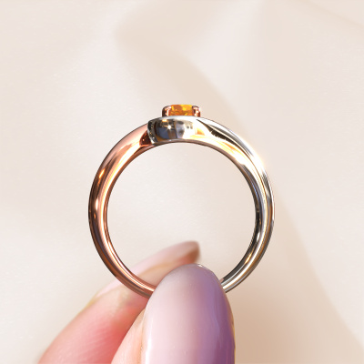 Voor jou is er maar één! Zij is zeldzaam, uniek en puur... Deze bijzondere moderne rosé gouden solitaire ring met citrien onderstreept deze karaktereigenschappen heel prachtig. Deze citrien is zorgvuldig geselecteerd door onze goudsmeden, en is net als je geliefde uniek. Wat is mooier om haar dit symbool te schenken bij jouw aanzoek? Bovenstaande verlovingsring heeft de naam Linn, dit type verlovingsring noemen we een solitaire ring omdat hij een enkele edelsteen bevat. De verlovingsring is uitgevoerd in 14 Carat rosé goud en heeft een ronde citrien ter grootte van 4.2 mm. Ieder juweel is uniek, doordat je deze ring geheel naar eigen wensen kunt samenstellen.Wist je dat we een beste prijs garantie geven voor jouw verlovingsring? Dit is mogelijk omdat al onze sieraden met de hand gemaakt worden in ons eigen atelier. We hebben geen dure voorraden, en we maken pas je verlovingsring op het moment dat je besteld hebt. Doordat we de hele productie zelf in de hand hebben, kunnen wij je goed informeren over alle eigenschappen van deze ring. Juist omdat het kopen van een verlovingsring online spannend is, begrijpen wij dat het fijn is om alle kenmerken te weten van jouw ring.Ons team is iedere dag weer bezig om nieuwe ontwerpen toe te voegen, in samenwerking met onze designers en goudsmeden wordt gekeken hoe we tot het mooiste ontwerp kunnen komen. Wij doen ons best om tot een zo gevarieerd mogelijk aanbod te komen. Wellicht heb je zelf al een mooi idee van een sieraad dat je ooit wel eens gezien hebt. Neem dan eens vrijblijvend contact met ons op. Wij maken een offerte voor je op waarbij wij vrij zeker zijn dat we wat betreft kwaliteit en prijs jou versteld zullen laten staan.Om het voor jou makkelijker te maken kun je ieder besteld sieraad binnen 30 dagen na aflevering eenvoudig weer retour sturen.