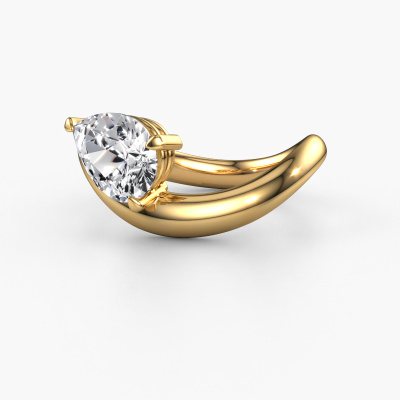 Bovenstaande verlovingsring heeft de naam Chloe PER. Dit type verlovingsring noemen we een solitaire verlovingsring omdat hij een enkele edelsteen bevat. De verlovingsring is uitgevoerd in 14 Carat goud en heeft een peer diamant ter grootte van 1.50 crt. Deze schitterende design gouden solitaire ring heeft een prachtige peer diamant om je aanzoek heel speciaal te maken. De open chatonzetting zorgt voor een prachtige lichtinval op de diamant. Wist je dat de diamant bijvoorbeeld symbool staat voor eeuwige liefde en trouw? Juist daarom is het een prachtige edelsteen om in het middelpunt te stellen. Onze goudsmid plaatst met veel zorgvuldigheid de gekozen edelsteen hoog op de ring, waardoor het een echte eyecatcher is. Ieder juweel is gemaakt om aan je vinger te stralen, ieder sieraad wordt met liefde door onze goudsmeden met de hand gemaakt.Omdat wij zelf alle verlovingsring maken en direct aan jou leveren kunnen wij je een verlovingsring leveren tegen een prijs die je nergens anders zult tegenkomen. Een ring wordt pas gemaakt als we een bestelling krijgen, hierdoor hebben wij geen dure voorraden en kunnen wij je de beste prijs garanderen. Wij begrijpen dat het kopen van een verlovingsring online spannend is en willen daarom je zoveel mogelijk informeren over alle specifieke eigenschappen van de ring die jij koopt.Ons team is iedere dag weer bezig om nieuwe ontwerpen toe te voegen, in samenwerking met onze designers en goudsmeden wordt gekeken hoe we tot het mooiste ontwerp kunnen komen. Wij doen ons best om tot een zo gevarieerd mogelijk aanbod te komen. Wellicht heb je zelf al een mooi idee van een sieraad dat je ooit wel eens gezien hebt. Neem dan eens vrijblijvend contact met ons op. Wij maken een offerte voor je op waarbij wij vrij zeker zijn dat we wat betreft kwaliteit en prijs jou versteld zullen laten staan.Om het voor jou makkelijker te maken kun je ieder besteld sieraad binnen 30 dagen na aflevering eenvoudig weer retour sturen.