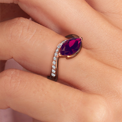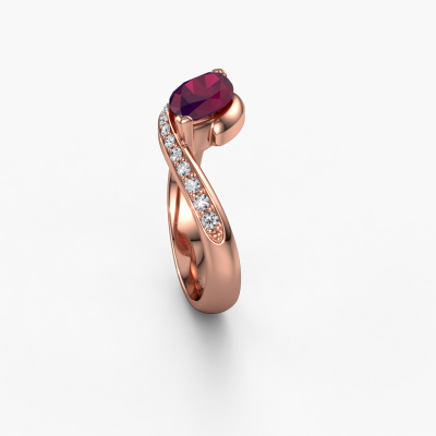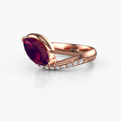 De naam van deze verlovingsring is de Aida MRQ side. Hij is gemaakt van 14 Carat rosé goud en gezet met een 11x5.5 mm rhodoliet. Zoek je een design rosé gouden verlovingsring, die je zelf naar jouw smaak kunt aanpassen? In deze design verlovingsring is rhodoliet verwerkt. Deze zijn zorgvuldig geselecteerd om het mooiste effect te creëren. Onze goudsmid vervaardigt jouw verlovingsring beneden in ons eigen atelier, en plaatst de rhodoliet met uiterste precisie in de ring. Vervolgens wordt deze bijgewerkt en gepolijst totdat het resultaat zichtbaar is: de perfecte verlovingsring voor de liefde van jouw leven! Dit juweel wordt met passie en liefde gemaakt door één van onze meestergoudsmeden.Wellicht is het je opgevallen dat onze prijzen gemiddeld 30% lager liggen dan bij een andere juwelier. En dat terwijl de kwaliteit in de meeste gevallen nog beter is! Dit komt doordat onze goudsmeden je verlovingsring direct in ons eigen atelier vervaardigen. Hierdoor hoeven we geen dure voorraden te hanteren en kunnen we ieder gewenst detail direct op jouw verlovingsring aanbrengen.Ons team is iedere dag weer bezig om nieuwe ontwerpen toe te voegen, in samenwerking met onze designers en goudsmeden wordt gekeken hoe we tot het mooiste ontwerp kunnen komen. Wij doen ons best om tot een zo gevarieerd mogelijk aanbod te komen. Wellicht heb je zelf al een mooi idee van een sieraad dat je ooit wel eens gezien hebt. Neem dan eens vrijblijvend contact met ons op. Wij maken een offerte voor je op waarbij wij vrij zeker zijn dat we wat betreft kwaliteit en prijs jou versteld zullen laten staan.Om het voor jou makkelijker te maken kun je ieder besteld sieraad binnen 30 dagen na aflevering eenvoudig weer retour sturen.