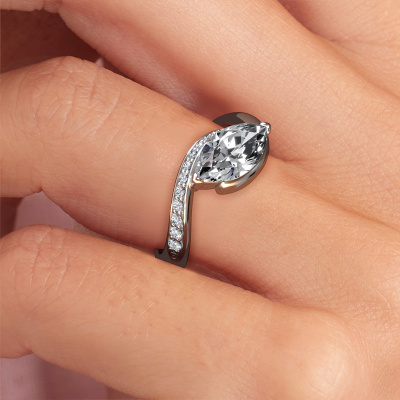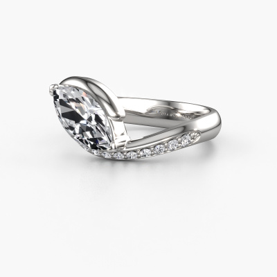 De naam van deze verlovingsring is de Aida MRQ side. Hij is gemaakt van 14 Carat witgoud en gezet met een 11x5.5 mm custom diamant. Zoek je een design witgouden verlovingsring, die je zelf naar jouw smaak kunt aanpassen? In deze design verlovingsring is custom diamant verwerkt. Deze zijn zorgvuldig geselecteerd om het mooiste effect te creëren. Onze goudsmid vervaardigt jouw verlovingsring beneden in ons eigen atelier, en plaatst de custom diamant met uiterste precisie in de ring. Vervolgens wordt deze bijgewerkt en gepolijst totdat het resultaat zichtbaar is: de perfecte verlovingsring voor de liefde van jouw leven! Dit juweel wordt met passie en liefde gemaakt door één van onze meestergoudsmeden.Wellicht is het je opgevallen dat onze prijzen gemiddeld 30% lager liggen dan bij een andere juwelier. En dat terwijl de kwaliteit in de meeste gevallen nog beter is! Dit komt doordat onze goudsmeden je verlovingsring direct in ons eigen atelier vervaardigen. Hierdoor hoeven we geen dure voorraden te hanteren en kunnen we ieder gewenst detail direct op jouw verlovingsring aanbrengen.Ons team is iedere dag weer bezig om nieuwe ontwerpen toe te voegen, in samenwerking met onze designers en goudsmeden wordt gekeken hoe we tot het mooiste ontwerp kunnen komen. Wij doen ons best om tot een zo gevarieerd mogelijk aanbod te komen. Wellicht heb je zelf al een mooi idee van een sieraad dat je ooit wel eens gezien hebt. Neem dan eens vrijblijvend contact met ons op. Wij maken een offerte voor je op waarbij wij vrij zeker zijn dat we wat betreft kwaliteit en prijs jou versteld zullen laten staan.Om het voor jou makkelijker te maken kun je ieder besteld sieraad binnen 30 dagen na aflevering eenvoudig weer retour sturen.