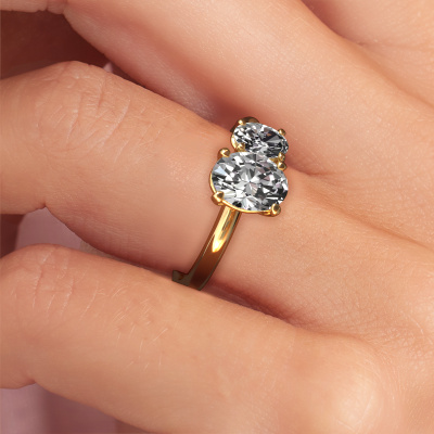 De naam van deze verlovingsring is de Toi et Moi OVL-OVL. Hij is gemaakt van 14 Carat goud en gezet met 1.50 crt diamant. Hoe zou je de stijl omschrijven van de liefde van jouw leven? Houdt zij van iets dat net een beetje anders is dan anders? Deze sublieme gouden verlovingsring is een mooie ring, die je zelf naar jouw of haar smaak verder kunt aanpassen. In deze moderne verlovingsring is diamant verwerkt. Deze diamanten zijn zorgvuldig geselecteerd, want wij vinden dat op jouw verlovingsring alleen de mooiste edelsteen mag schitteren, toch? Dit juweel is gemaakt door een team van gedreven goudsmeden en designers. Hierdoor zal dit unieke pronkstuk een echte eyecatcher zijn.Onze goudsmeden vervaardigen pas je Toi et Moi OVL-OVL verlovingsring, zodra je deze besteld hebt. We hebben geen voorraden. Het voordeel hiervan is dat we de voorraad niet door hoeven te berekenen in de prijs, en kunnen daardoor sieraden leveren tegen een bijzonder lage prijs.Ons team ontwerpt dagelijks nieuwe ringen in diverse stijlen. Heb je zelf een 2 steens verlovingsring ergens gezien, die jij het liefst aan jouw geliefde zou willen geven? Je kunt altijd jouw ideeën en ontwerp met onze sieradenontwerpers bespreken, want wij zetten graag jouw ontwerp om tot een moderne verlovingsring. Je kunt tijdens het ontwerpproces steeds meekijken, omdat het ontwerp in een zeer gedetailleerde 3D tekening wordt omgezet. Daarbij kun je een dummy bestellen van het uiteindelijke ontwerp. Een dummy is een kunststof ring, die precies dezelfde vormen heeft als jouw uiteindelijke ontwerp. Je kunt deze passen en zien of de ontworpen verlovingsring helemaal naar jouw wens is. Wij sturen je graag een vrijblijvende offerte, waarbij je ongetwijfeld versteld zult staan over de prijs en de kwaliteit van de ring en edelstenen.Om het voor jou makkelijker te maken kun je ieder besteld sieraad binnen 30 dagen na aflevering eenvoudig weer retour sturen.