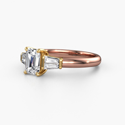 De naam van deze verlovingsring is de Kina EME. Hij is gemaakt van 14 Carat rosé goud en gezet met 1.22 crt diamant. Hoe zou je de stijl omschrijven van de liefde van jouw leven? Houdt zij van iets dat net een beetje anders is dan anders? Deze bijzondere rosé gouden verlovingsring is een mooie ring, die je zelf naar jouw of haar smaak verder kunt aanpassen. In deze exclusieve verlovingsring is diamant verwerkt. Deze diamanten zijn zorgvuldig geselecteerd, want wij vinden dat op jouw verlovingsring alleen de mooiste edelsteen mag schitteren, toch? Dit juweel is gemaakt door een team van gedreven goudsmeden en designers. Hierdoor zal dit unieke pronkstuk een echte eyecatcher zijn.Wellicht is het je opgevallen dat onze prijzen gemiddeld 30% lager liggen dan bij een andere juwelier. En dat terwijl de kwaliteit in de meeste gevallen nog beter is! Dit komt doordat onze goudsmeden je verlovingsring direct in ons eigen atelier vervaardigen. Hierdoor hoeven we geen dure voorraden te hanteren en kunnen we ieder gewenst detail direct op jouw verlovingsring aanbrengen.Heb je zelf een specifieke verlovingsring ergens gezien, die je graag aan jouw geliefde zou willen geven? Bespreek gerust jouw ideeën met onze sieradenontwerpers, want wij zetten graag jouw ontwerp om tot een exclusieve verlovingsring. Je kunt tijdens het ontwerpproces steeds meekijken, omdat wij met 3D tekeningen werken. Je krijgt hierdoor al een realistische indruk van hoe jouw ontwerp er in werkelijkheid uit komt te zien. Daarbij kun je een dummy vooraf bestellen. Een dummy is een kunststof ring, die precies dezelfde vormen heeft als jouw uiteindelijke ontwerp. Je kunt deze passen en zien of de breedte en dikte bijvoorbeeld naar wens zijn. Wij sturen je graag een vrijblijvende offerte, waarbij je ongetwijfeld versteld zult staan over de prijs en de kwaliteit van de ring en edelstenen.Om het voor jou makkelijker te maken kun je ieder besteld sieraad binnen 30 dagen na aflevering eenvoudig weer retour sturen.