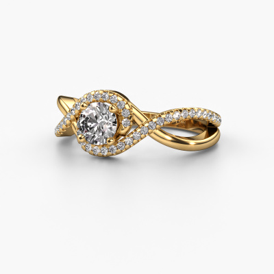 Bovenstaande verlovingsring heeft de naam Melody. Dit type verlovingsring noemen we een pavé solitaire verlovingsring omdat hij een enkele middensteen heeft waarbij de banden van de verlovingsring ook volgezet zijn. Deze verlovingsring is uitgevoerd in 14 Carat goud en heeft als middensteen een ronde diamant ter grootte van 0.50 crt, en in de zijbanden zijn diamanten gezet. Ieder juweel is uniek, doordat je deze ring geheel naar eigen wensen kunt samenstellen.. Deze klassieke gouden pavé solitaire verlovingsring heeft een schitterende ronde diamant als center steen, waarbij in de band nog meer diamanten zijn gezet om de middensteen nog meer te accentueren. Doordat de zetting van de pootjes om de diamant open is, vangt de diamant het licht van alle kanten op en schittert hierdoor optimaal. Hierboven kun je zien hoe onze goudsmid de verlovingsring heel precies tot in de kleinste details heeft bewerkt, zodat de wat hoger gelegen diamant een echte eyecatcher is. Wat een prachtige verlovingsring om te geven bij je aanzoek aan de liefde van jouw leven, aan jouw stralende middelpunt!Omdat wij zelf alle verlovingsring maken en direct aan jou leveren kunnen wij je een verlovingsring leveren tegen een prijs die je nergens anders zult tegenkomen. Een ring wordt pas gemaakt als we een bestelling krijgen, hierdoor hebben wij geen dure voorraden en kunnen wij je de beste prijs garanderen. Wij begrijpen dat het kopen van een verlovingsring online spannend is en willen daarom je zoveel mogelijk informeren over alle specifieke eigenschappen van de ring die jij koopt.Heb je zelf een speciale ring in gedachten, die je wellicht ergens gezien hebt? Je kunt je ideeën altijd met ons bespreken, wij zetten graag jouw ontwerp om tot een unieke verlovingsring. Het ontwerp kun je volgen, omdat wij met 3D tekeningen werken. Hierdoor krijg je al een realistische indruk van hoe jouw ontwerp er in het echt uit komt te zien. Wij sturen je graag een vrijblijvende offerte, waarbij je ongetwijfeld verwonderd zult zijn over de prijs in combinatie met de uitstekende kwaliteit die we aanbieden.Om het voor jou makkelijker te maken kun je ieder besteld sieraad binnen 30 dagen na aflevering eenvoudig weer retour sturen.