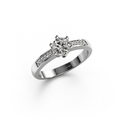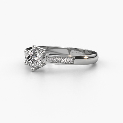 Bovenstaande verlovingsring heeft de naam Luna 2. Dit type verlovingsring noemen we een pavé solitaire verlovingsring omdat hij een enkele middensteen heeft waarbij de banden van de verlovingsring ook volgezet zijn. Deze verlovingsring is uitgevoerd in platina en heeft als middensteen een ronde diamant ter grootte van 0.40 crt, en in de zijbanden zijn diamanten gezet. Ieder juweel is uniek, doordat je deze ring geheel naar eigen wensen kunt samenstellen.. Deze klassieke platina pavé solitaire verlovingsring heeft een schitterende ronde diamant als center steen, waarbij in de band nog meer diamanten zijn gezet om de middensteen nog meer te accentueren. Doordat de zetting van de pootjes om de diamant open is, vangt de diamant het licht van alle kanten op en schittert hierdoor optimaal. Hierboven kun je zien hoe onze goudsmid de verlovingsring heel precies tot in de kleinste details heeft bewerkt, zodat de wat hoger gelegen diamant een echte eyecatcher is. Wat een prachtige verlovingsring om te geven bij je aanzoek aan de liefde van jouw leven, aan jouw stralende middelpunt!Omdat wij zelf alle verlovingsring maken en direct aan jou leveren kunnen wij je een verlovingsring leveren tegen een prijs die je nergens anders zult tegenkomen. Een ring wordt pas gemaakt als we een bestelling krijgen, hierdoor hebben wij geen dure voorraden en kunnen wij je de beste prijs garanderen. Wij begrijpen dat het kopen van een verlovingsring online spannend is en willen daarom je zoveel mogelijk informeren over alle specifieke eigenschappen van de ring die jij koopt.Ons team is iedere dag weer bezig om nieuwe ontwerpen toe te voegen, in samenwerking met onze designers en goudsmeden wordt gekeken hoe we tot het mooiste ontwerp kunnen komen. Wij doen ons best om tot een zo gevarieerd mogelijk aanbod te komen. Wellicht heb je zelf al een mooi idee van een sieraad dat je ooit wel eens gezien hebt. Neem dan eens vrijblijvend contact met ons op. Wij maken een offerte voor je op waarbij wij vrij zeker zijn dat we wat betreft kwaliteit en prijs jou versteld zullen laten staan.Om het voor jou makkelijker te maken kun je ieder besteld sieraad binnen 30 dagen na aflevering eenvoudig weer retour sturen.