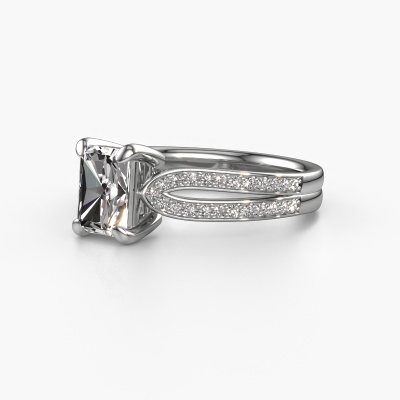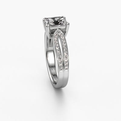 Bovenstaande verlovingsring heeft de naam Antonia rad 2. Dit type verlovingsring noemen we een pavé solitaire verlovingsring omdat hij een enkele middensteen heeft waarbij de banden van de verlovingsring ook volgezet zijn. De verlovingsring is uitgevoerd in de combinatie platina met platina en heeft als middensteen een radiant diamant ter grootte van 1.00 crt en in de zijbanden zijn diamanten gezet. Ieder juweel wordt speciaal voor jou gemaakt door onze meester goudsmeden in ons eigen atelier.Deze chique platina pavé solitaire verlovingsring heeft een schitterende radiant diamant als centersteen, waarbij in de band nog meer diamanten zijn gezet om de middensteen nog meer te accentueren. Doordat de zetting van de pootjes om de diamant open is, vangt de diamant het licht van alle kanten op en schittert hierdoor optimaal. Hierboven kun je zien hoe onze goudsmid de verlovingsring heel precies tot in de kleinste details heeft bewerkt, zodat de wat hoger gelegen diamant een echte eyecatcher is. Wat een prachtige verlovingsring om te geven bij je aanzoek aan de liefde van jouw leven, aan jouw stralende middelpunt!Omdat wij zelf alle verlovingsring maken en direct aan jou leveren kunnen wij je een verlovingsring leveren tegen een prijs die je nergens anders zult tegenkomen. Een ring wordt pas gemaakt als we een bestelling krijgen, hierdoor hebben wij geen dure voorraden en kunnen wij je de beste prijs garanderen. Wij begrijpen dat het kopen van een verlovingsring online spannend is en willen daarom je zoveel mogelijk informeren over alle specifieke eigenschappen van de ring die jij koopt.Ons team is iedere dag weer bezig om nieuwe ontwerpen toe te voegen, in samenwerking met onze designers en goudsmeden wordt gekeken hoe we tot het mooiste ontwerp kunnen komen. Wij doen ons best om tot een zo gevarieerd mogelijk aanbod te komen. Wellicht heb je zelf al een mooi idee van een sieraad dat je ooit wel eens gezien hebt. Neem dan eens vrijblijvend contact met ons op. Wij maken een offerte voor je op waarbij wij vrij zeker zijn dat we wat betreft kwaliteit en prijs jou versteld zullen laten staan.Om het voor jou makkelijker te maken kun je ieder besteld sieraad binnen 30 dagen na aflevering eenvoudig weer retour sturen.