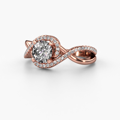 Bovenstaande verlovingsring heeft de naam Melody. Dit type verlovingsring noemen we een pavé solitaire verlovingsring omdat hij een enkele middensteen heeft waarbij de banden van de verlovingsring ook volgezet zijn. Deze verlovingsring is uitgevoerd in 14 Carat rosé goud en heeft als middensteen een ronde diamant ter grootte van 1.00 crt, en in de zijbanden zijn diamanten gezet. Ieder juweel is uniek, doordat je deze ring geheel naar eigen wensen kunt samenstellen.. Deze klassieke rosé gouden pavé solitaire verlovingsring heeft een schitterende ronde diamant als center steen, waarbij in de band nog meer diamanten zijn gezet om de middensteen nog meer te accentueren. Doordat de zetting van de pootjes om de diamant open is, vangt de diamant het licht van alle kanten op en schittert hierdoor optimaal. Hierboven kun je zien hoe onze goudsmid de verlovingsring heel precies tot in de kleinste details heeft bewerkt, zodat de wat hoger gelegen diamant een echte eyecatcher is. Wat een prachtige verlovingsring om te geven bij je aanzoek aan de liefde van jouw leven, aan jouw stralende middelpunt!Omdat wij zelf alle verlovingsring maken en direct aan jou leveren kunnen wij je een verlovingsring leveren tegen een prijs die je nergens anders zult tegenkomen. Een ring wordt pas gemaakt als we een bestelling krijgen, hierdoor hebben wij geen dure voorraden en kunnen wij je de beste prijs garanderen. Wij begrijpen dat het kopen van een verlovingsring online spannend is en willen daarom je zoveel mogelijk informeren over alle specifieke eigenschappen van de ring die jij koopt.Heb je zelf een speciale ring in gedachten, die je wellicht ergens gezien hebt? Je kunt je ideeën altijd met ons bespreken, wij zetten graag jouw ontwerp om tot een unieke verlovingsring. Het ontwerp kun je volgen, omdat wij met 3D tekeningen werken. Hierdoor krijg je al een realistische indruk van hoe jouw ontwerp er in het echt uit komt te zien. Wij sturen je graag een vrijblijvende offerte, waarbij je ongetwijfeld verwonderd zult zijn over de prijs in combinatie met de uitstekende kwaliteit die we aanbieden.Om het voor jou makkelijker te maken kun je ieder besteld sieraad binnen 30 dagen na aflevering eenvoudig weer retour sturen.