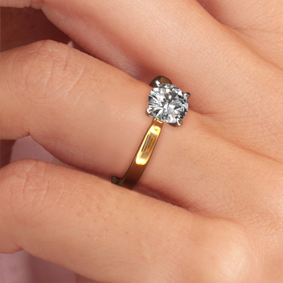 Bovenstaande verlovingsring heeft de naam Mignon rnd 1, dit type verlovingsring noemen we een solitaire ring omdat hij een enkele edelsteen bevat. De verlovingsring is uitgevoerd in 14 Carat goud en heeft een ronde diamant ter grootte van 1.00 crt. Het leuke van onze configurator is dat je zelf je juweel kunt samenstellen tot een eigen persoonlijk juweel. Deze solitaire ring is uitgevoerd in de edelmetaal combinatie goud met witgoud, maar u kunt dus ook uit andere kleuren kiezen. Ieder juweel wordt met passie en liefde gemaakt door één van onze meestergoudsmeden.De solitaire verlovingsring is een bijzondere verlovingsring. Juist doordat de chatonzetting open is, creëert de lichtinval een schitterend effect op de edelsteen. Omdat de gekozen edelsteen hoog op de verlovingsring geplaatst wordt, wordt deze klassieke verlovingsring een prachtige eyecatcher. Met veel zorgvuldigheid vervaardigen wij alle details in deze solitaire verlovingsring met de hand, zodat jij binnenkort je aanzoek kunt bekronen met een unieke ring, speciaal voor de liefde van jouw leven!Wist je dat we een beste prijs garantie geven voor jouw verlovingsring? Dit is mogelijk omdat al onze sieraden met de hand gemaakt worden in ons eigen atelier. We hebben geen dure voorraden, en we maken pas je verlovingsring op het moment dat je besteld hebt. Doordat we de hele productie zelf in de hand hebben, kunnen wij je goed informeren over alle eigenschappen van deze ring. Juist omdat het kopen van een verlovingsring online spannend is, begrijpen wij dat het fijn is om alle kenmerken te weten van jouw ring.Heb je zelf een specifieke verlovingsring ergens gezien, die je graag aan jouw geliefde zou willen geven? Bespreek gerust jouw ideeën met onze sieradenontwerpers, want wij zetten graag jouw ontwerp om tot een klassieke verlovingsring. Je kunt tijdens het ontwerpproces steeds meekijken, omdat wij met 3D tekeningen werken. Je krijgt hierdoor al een realistische indruk van hoe jouw ontwerp er in werkelijkheid uit komt te zien. Daarbij kun je een dummy vooraf bestellen. Een dummy is een kunststof ring, die precies dezelfde vormen heeft als jouw uiteindelijke ontwerp. Je kunt deze passen en zien of de breedte en dikte bijvoorbeeld naar wens zijn. Wij sturen je graag een vrijblijvende offerte, waarbij je ongetwijfeld versteld zult staan over de prijs en de kwaliteit van de ring en edelstenen.Om het voor jou makkelijker te maken kun je ieder besteld sieraad binnen 30 dagen na aflevering eenvoudig weer retour sturen.