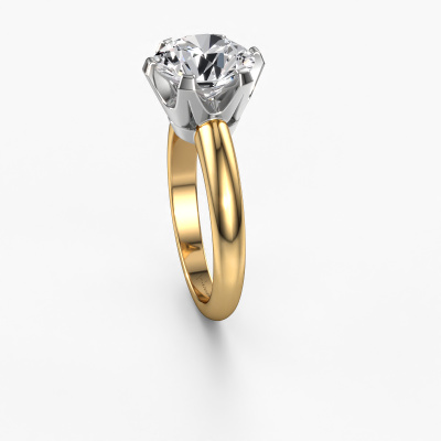 Bovenstaande verlovingsring heeft de naam Tiffy 1, dit type verlovingsring noemen we een solitaire ring omdat hij een enkele edelsteen bevat. De verlovingsring is uitgevoerd in 14 Carat goud en heeft een ronde diamant ter grootte van 2.00 crt. Het leuke van onze configurator is dat je zelf je juweel kunt samenstellen tot een eigen persoonlijk juweel. Deze solitaire ring is uitgevoerd in de edelmetaal combinatie goud met witgoud, maar u kunt dus ook uit andere kleuren kiezen. Ieder juweel is speciaal voor jou gemaakt, met aandacht voor detail en design.De solitaire verlovingsring is een bijzondere verlovingsring. Juist doordat de chatonzetting open is, creëert de lichtinval een schitterend effect op de edelsteen. Omdat de gekozen edelsteen hoog op de verlovingsring geplaatst wordt, wordt deze klassieke verlovingsring een prachtige eyecatcher. Met veel zorgvuldigheid vervaardigen wij alle details in deze solitaire verlovingsring met de hand, zodat jij binnenkort je aanzoek kunt bekronen met een unieke ring, speciaal voor de liefde van jouw leven!Door onze modernste technieken kunnen wij met uiterste precisie prachtige sieraden te ontwerpen en voor jou personaliseren in de hoogste juwelierskwaliteit. Tegelijkertijd zijn onze verlovingsringen altijd 30% goedkoper dan bij een andere juwelier. Dit komt doordat alle verlovingsringen pas vervaardigd worden op het moment dat deze besteld wordt en we daardoor geen dure voorraden hoeven te hanteren. Mocht je aan een bepaald budget gebonden zijn, kunnen we je graag adviseren welke combinatie je het beste kunt kiezen.Iedere dag is ons team van goudsmeden en sieradenontwerpers aan het werk om nieuwe sieraden te creëren. Het kan zijn dat je ergens een klassieke verlovingsring gezien hebt, die je als basis wilt nemen bij het ontwerpen van jouw unieke ring. Neem gerust contact met ons op en we zullen je een aanbod doen, waar je vrijwel zeker verwonderd zult zijn over de kwaliteit en de prijs.Om het voor jou makkelijker te maken kun je ieder besteld sieraad binnen 30 dagen na aflevering eenvoudig weer retour sturen.