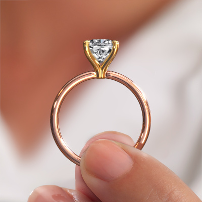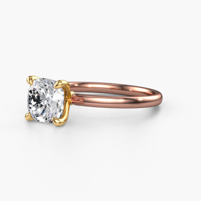 Bovenstaande verlovingsring heeft de naam Crystal CUS 1, dit type verlovingsring noemen we een solitaire ring omdat hij een enkele edelsteen bevat. De verlovingsring is uitgevoerd in 14 Carat rosé goud en heeft een cushion diamant ter grootte van 2.00 crt. Het leuke van onze configurator is dat je zelf je juweel kunt samenstellen tot een eigen persoonlijk juweel. Deze solitaire ring is uitgevoerd in de edelmetaal combinatie rosé goud met goud, maar u kunt dus ook uit andere kleuren kiezen. Ieder juweel wordt met passie en liefde gemaakt door één van onze meestergoudsmeden.De solitaire verlovingsring is een bijzondere verlovingsring. Juist doordat de chatonzetting open is, creëert de lichtinval een schitterend effect op de edelsteen. Omdat de gekozen edelsteen hoog op de verlovingsring geplaatst wordt, wordt deze eigentijdse verlovingsring een prachtige eyecatcher. Met veel zorgvuldigheid vervaardigen wij alle details in deze solitaire verlovingsring met de hand, zodat jij binnenkort je aanzoek kunt bekronen met een unieke ring, speciaal voor de liefde van jouw leven!Omdat wij zelf alle verlovingsring maken en direct aan jou leveren kunnen wij je een verlovingsring leveren tegen een prijs die je nergens anders zult tegenkomen. Een ring wordt pas gemaakt als we een bestelling krijgen, hierdoor hebben wij geen dure voorraden en kunnen wij je de beste prijs garanderen. Wij begrijpen dat het kopen van een verlovingsring online spannend is en willen daarom je zoveel mogelijk informeren over alle specifieke eigenschappen van de ring die jij koopt.Ons team is iedere dag weer bezig om nieuwe ontwerpen toe te voegen, in samenwerking met onze designers en goudsmeden wordt gekeken hoe we tot het mooiste ontwerp kunnen komen. Wij doen ons best om tot een zo gevarieerd mogelijk aanbod te komen. Wellicht heb je zelf al een mooi idee van een sieraad dat je ooit wel eens gezien hebt. Neem dan eens vrijblijvend contact met ons op. Wij maken een offerte voor je op waarbij wij vrij zeker zijn dat we wat betreft kwaliteit en prijs jou versteld zullen laten staan.Om het voor jou makkelijker te maken kun je ieder besteld sieraad binnen 30 dagen na aflevering eenvoudig weer retour sturen.