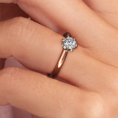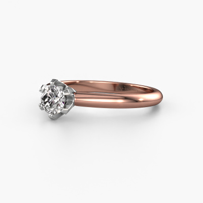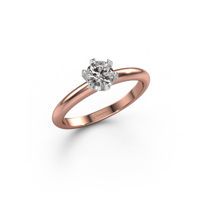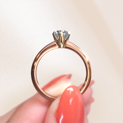 Bovenstaande verlovingsring heeft de naam Tiffy 1, dit type verlovingsring noemen we een solitaire ring omdat hij een enkele edelsteen bevat. De verlovingsring is uitgevoerd in 14 Carat rosé goud en heeft een ronde diamant ter grootte van 0.40 crt. Het leuke van onze configurator is dat je zelf je juweel kunt samenstellen tot een eigen persoonlijk juweel. Deze solitaire ring is uitgevoerd in de edelmetaal combinatie rosé goud met witgoud, maar u kunt dus ook uit andere kleuren kiezen. Ieder juweel is speciaal voor jou gemaakt, met aandacht voor detail en design.De solitaire verlovingsring is een bijzondere verlovingsring. Juist doordat de chatonzetting open is, creëert de lichtinval een schitterend effect op de edelsteen. Omdat de gekozen edelsteen hoog op de verlovingsring geplaatst wordt, wordt deze klassieke verlovingsring een prachtige eyecatcher. Met veel zorgvuldigheid vervaardigen wij alle details in deze solitaire verlovingsring met de hand, zodat jij binnenkort je aanzoek kunt bekronen met een unieke ring, speciaal voor de liefde van jouw leven!Door onze modernste technieken kunnen wij met uiterste precisie prachtige sieraden te ontwerpen en voor jou personaliseren in de hoogste juwelierskwaliteit. Tegelijkertijd zijn onze verlovingsringen altijd 30% goedkoper dan bij een andere juwelier. Dit komt doordat alle verlovingsringen pas vervaardigd worden op het moment dat deze besteld wordt en we daardoor geen dure voorraden hoeven te hanteren. Mocht je aan een bepaald budget gebonden zijn, kunnen we je graag adviseren welke combinatie je het beste kunt kiezen.Iedere dag is ons team van goudsmeden en sieradenontwerpers aan het werk om nieuwe sieraden te creëren. Het kan zijn dat je ergens een klassieke verlovingsring gezien hebt, die je als basis wilt nemen bij het ontwerpen van jouw unieke ring. Neem gerust contact met ons op en we zullen je een aanbod doen, waar je vrijwel zeker verwonderd zult zijn over de kwaliteit en de prijs.Om het voor jou makkelijker te maken kun je ieder besteld sieraad binnen 30 dagen na aflevering eenvoudig weer retour sturen.
