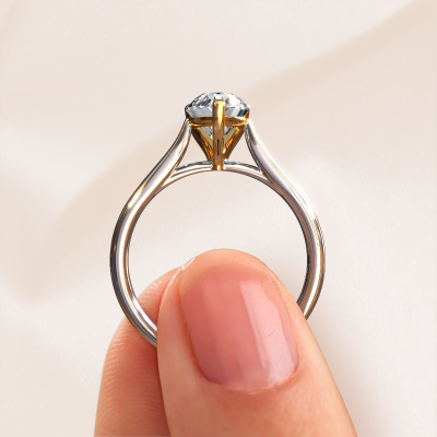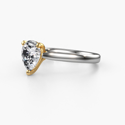 Bovenstaande verlovingsring heeft de naam Mignon PER 1, dit type verlovingsring noemen we een solitaire ring omdat hij een enkele edelsteen bevat. De verlovingsring is uitgevoerd in 14 Carat witgoud en heeft een peer diamant ter grootte van 1.50 crt. Het leuke van onze configurator is dat je zelf je juweel kunt samenstellen tot een eigen persoonlijk juweel. Deze solitaire ring is uitgevoerd in de edelmetaal combinatie witgoud met goud, maar u kunt dus ook uit andere kleuren kiezen. Ieder juweel is gemaakt om aan je vinger te stralen, ieder sieraad wordt met liefde door onze goudsmeden met de hand gemaakt.De solitaire verlovingsring is een bijzondere verlovingsring. Juist doordat de chatonzetting open is, creëert de lichtinval een schitterend effect op de edelsteen. Omdat de gekozen edelsteen hoog op de verlovingsring geplaatst wordt, wordt deze klassieke verlovingsring een prachtige eyecatcher. Met veel zorgvuldigheid vervaardigen wij alle details in deze solitaire verlovingsring met de hand, zodat jij binnenkort je aanzoek kunt bekronen met een unieke ring, speciaal voor de liefde van jouw leven!Onze goudsmeden vervaardigen pas je Mignon PER 1 verlovingsring, zodra je deze besteld hebt. We hebben geen voorraden. Het voordeel hiervan is dat we de voorraad niet door hoeven te berekenen in de prijs, en kunnen daardoor sieraden leveren tegen een bijzonder lage prijs.Ons team is iedere dag weer bezig om nieuwe ontwerpen toe te voegen, in samenwerking met onze designers en goudsmeden wordt gekeken hoe we tot het mooiste ontwerp kunnen komen. Wij doen ons best om tot een zo gevarieerd mogelijk aanbod te komen. Wellicht heb je zelf al een mooi idee van een sieraad dat je ooit wel eens gezien hebt. Neem dan eens vrijblijvend contact met ons op. Wij maken een offerte voor je op waarbij wij vrij zeker zijn dat we wat betreft kwaliteit en prijs jou versteld zullen laten staan.Om het voor jou makkelijker te maken kun je ieder besteld sieraad binnen 30 dagen na aflevering eenvoudig weer retour sturen.