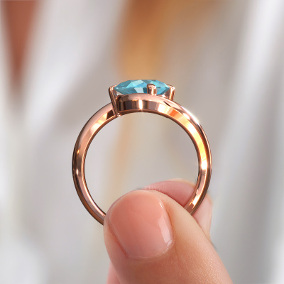 De naam van deze verlovingsring is de Aida PER. Hij is gemaakt van 14 Carat rosé goud en gezet met een 9x7 mm blauw topaas. Zoek je een fantasie rosé gouden verlovingsring, die je zelf naar jouw smaak kunt aanpassen? In deze fantasie