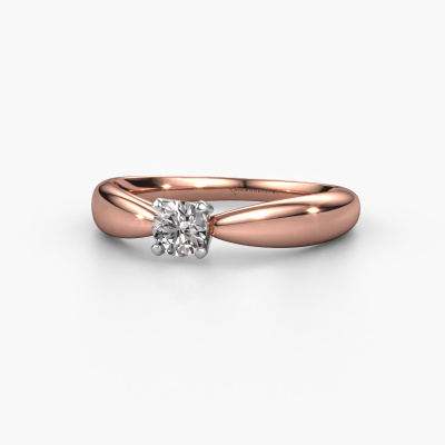 Bovenstaande verlovingsring heeft de naam Nichole. Dit type verlovingsring noemen we een solitaire verlovingsring omdat hij een enkele edelsteen bevat. De verlovingsring is uitgevoerd in 14 Carat rosé goud en heeft een ronde diamant ter grootte van 0.25 crt. Deze schitterende fantasie rosé gouden solitaire ring heeft een prachtige ronde diamant om je aanzoek heel speciaal te maken. De open chatonzetting zorgt voor een prachtige lichtinval op de diamant. Wist je dat de diamant bijvoorbeeld symbool staat voor eeuwige liefde en trouw? Juist daarom is het een prachtige edelsteen om in het middelpunt te stellen. Onze goudsmid plaatst met veel zorgvuldigheid de gekozen edelsteen hoog op de ring, waardoor het een echte eyecatcher is. Ieder juweel wordt speciaal voor jou gemaakt door onze meester goudsmeden in ons eigen atelier.Wist je dat we een beste prijs garantie geven voor jouw verlovingsring? Dit is mogelijk omdat al onze sieraden met de hand gemaakt worden in ons eigen atelier. We hebben geen dure voorraden, en we maken pas je verlovingsring op het moment dat je besteld hebt. Doordat we de hele productie zelf in de hand hebben, kunnen wij je goed informeren over alle eigenschappen van deze ring. Juist omdat het kopen van een verlovingsring online spannend is, begrijpen wij dat het fijn is om alle kenmerken te weten van jouw ring.Heb je zelf een speciale ring in gedachten, die je wellicht ergens gezien hebt? Je kunt je ideeën altijd met ons bespreken, wij zetten graag jouw ontwerp om tot een unieke verlovingsring. Het ontwerp kun je volgen, omdat wij met 3D tekeningen werken. Hierdoor krijg je al een realistische indruk van hoe jouw ontwerp er in het echt uit komt te zien. Wij sturen je graag een vrijblijvende offerte, waarbij je ongetwijfeld verwonderd zult zijn over de prijs in combinatie met de uitstekende kwaliteit die we aanbieden.Om het voor jou makkelijker te maken kun je ieder besteld sieraad binnen 30 dagen na aflevering eenvoudig weer retour sturen.