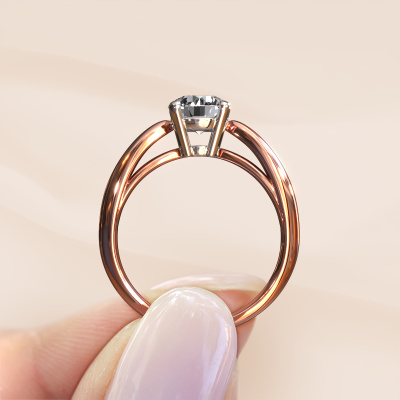 Bovenstaande verlovingsring heeft de naam Nichole. Dit type verlovingsring noemen we een solitaire verlovingsring omdat hij een enkele edelsteen bevat. De verlovingsring is uitgevoerd in 14 Carat rosé goud en heeft een ronde diamant ter grootte van 1.00 crt. Deze schitterende fantasie rosé gouden solitaire ring heeft een prachtige ronde diamant om je aanzoek heel speciaal te maken. De open chatonzetting zorgt voor een prachtige lichtinval op de diamant. Wist je dat de diamant bijvoorbeeld symbool staat voor eeuwige liefde en trouw? Juist daarom is het een prachtige edelsteen om in het middelpunt te stellen. Onze goudsmid plaatst met veel zorgvuldigheid de gekozen edelsteen hoog op de ring, waardoor het een echte eyecatcher is. Ieder juweel wordt speciaal voor jou gemaakt door onze meester goudsmeden in ons eigen atelier.Wist je dat we een beste prijs garantie geven voor jouw verlovingsring? Dit is mogelijk omdat al onze sieraden met de hand gemaakt worden in ons eigen atelier. We hebben geen dure voorraden, en we maken pas je verlovingsring op het moment dat je besteld hebt. Doordat we de hele productie zelf in de hand hebben, kunnen wij je goed informeren over alle eigenschappen van deze ring. Juist omdat het kopen van een verlovingsring online spannend is, begrijpen wij dat het fijn is om alle kenmerken te weten van jouw ring.Heb je zelf een speciale ring in gedachten, die je wellicht ergens gezien hebt? Je kunt je ideeën altijd met ons bespreken, wij zetten graag jouw ontwerp om tot een unieke verlovingsring. Het ontwerp kun je volgen, omdat wij met 3D tekeningen werken. Hierdoor krijg je al een realistische indruk van hoe jouw ontwerp er in het echt uit komt te zien. Wij sturen je graag een vrijblijvende offerte, waarbij je ongetwijfeld verwonderd zult zijn over de prijs in combinatie met de uitstekende kwaliteit die we aanbieden.Om het voor jou makkelijker te maken kun je ieder besteld sieraad binnen 30 dagen na aflevering eenvoudig weer retour sturen.